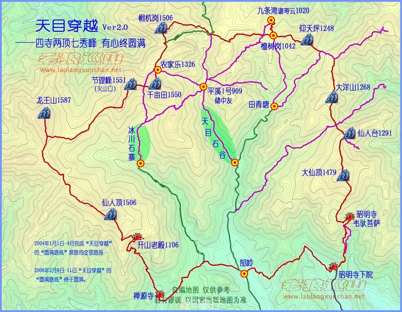 行程:农家—(4km/2h)—6仰天坪(1248米)—(3.5km/2h)—7大仙顶(1484米)—(6km/3h)—接驳点—上海,共计13.5公里