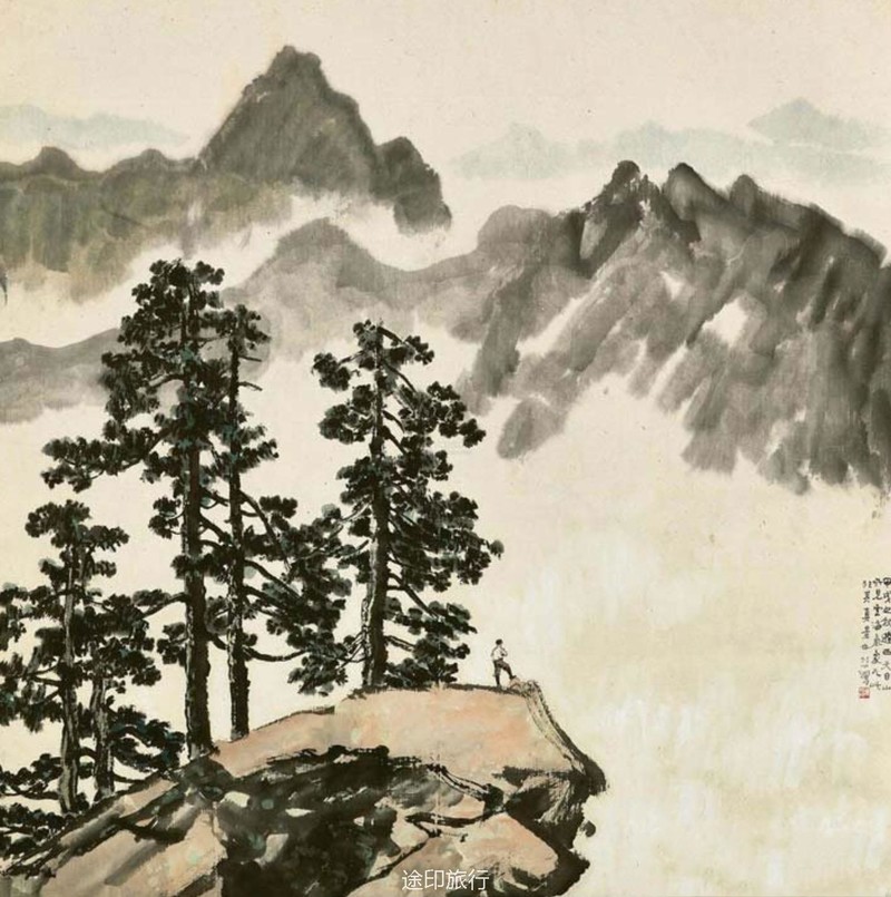 1934年秋天,徐悲鸿大师曾带中央大学艺术专修科学生到天目山写生,《云海-天目山》就是画家当时所作。