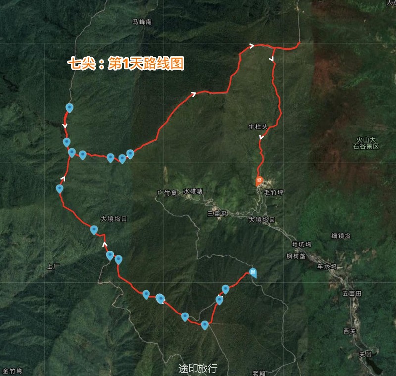 ▲ 七尖穿越第一天徒步路线 图|卫仙制作