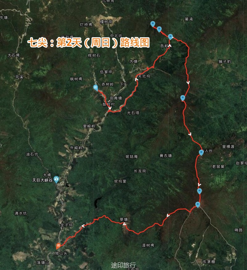 ▲ 七尖穿越第二天徒步路线 图|卫仙制作
