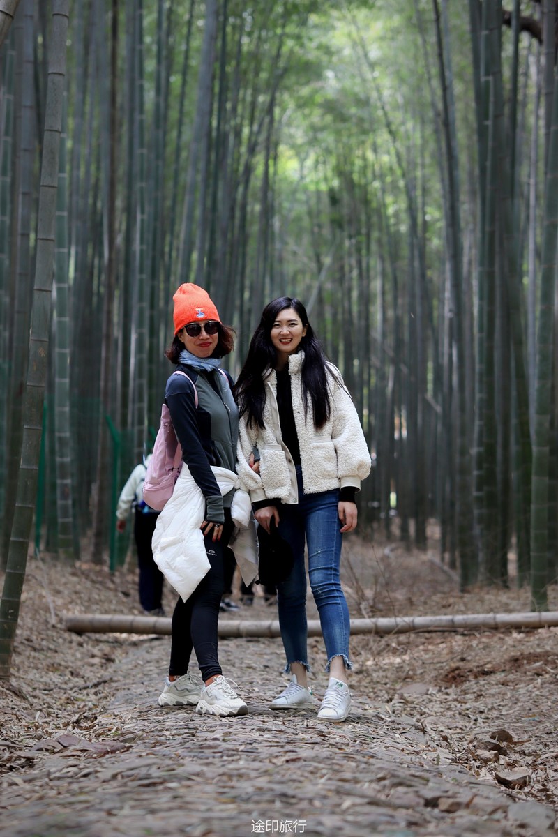 终于走完了下坡,来到寺庙前的竹林