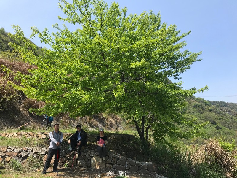 一路穿过竹林,远眺石长城后到平底,迎接我们的就是这颗嫩绿的大树。看到这幅画面,不禁想起:大树底下好乘凉~