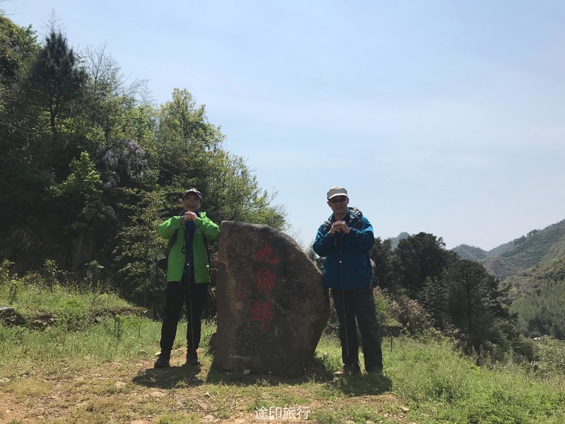 在凉亭休午餐和休整之后去观景平台,俯瞰另一侧的山谷。经过“九仰坪”石标,大家纷纷久仰久仰。