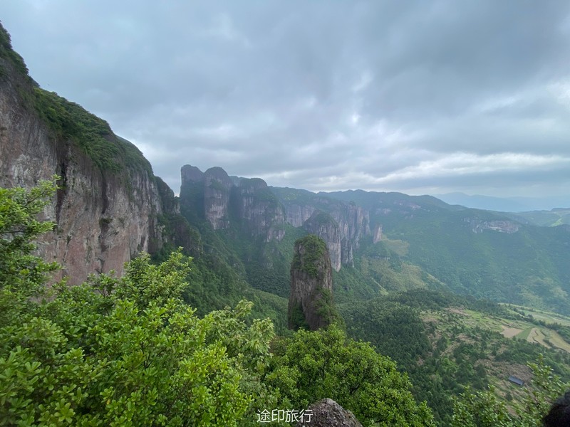 浙江的香格里拉---公盂村,是坐落在海拔600M的高山村落。四面奇峰环绕,峰顶海拔在1200米左右,村庄被山峰围成了一个小小的盆地 。整个公盂巍峨鼎立,气势峥嵘,山崖连着山崖,横亘无际,各峰离立,自为一体,石林崖壁,各有风采。攀上村南的公盂背,美景可尽收眼底.公盂又被称为台州的香格里拉,足见她的唯美。村庄没有一息喧嚣之音。见到的画面,土坯,四合院,袅袅炊烟,梯田,老牛,耕作的人们,黄狗,老人。夜,风声,雨声,一群来探寻村落人的话语声。公盂岩位于浙江仙居公盂岭公盂岩南面。为东西走向的一片巨型峭壁,长1200米,高150—200米,崖壁陡峭,气势磅礴,西侧下方有一崩塌残余,色彩丰富,光滑平整,上部