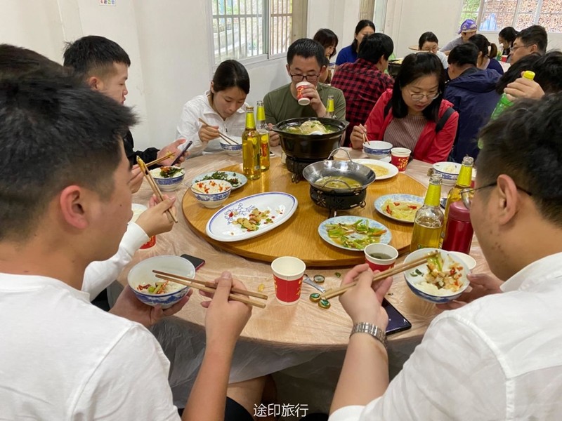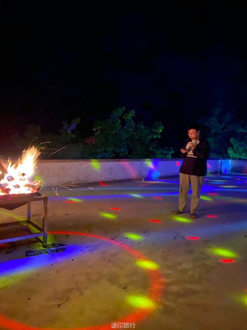 河边玩耍回来吃了丰盛的农家晚餐,偶遇别的团队 然后大家一起搞了非常开心的篝火晚会