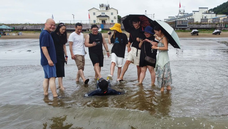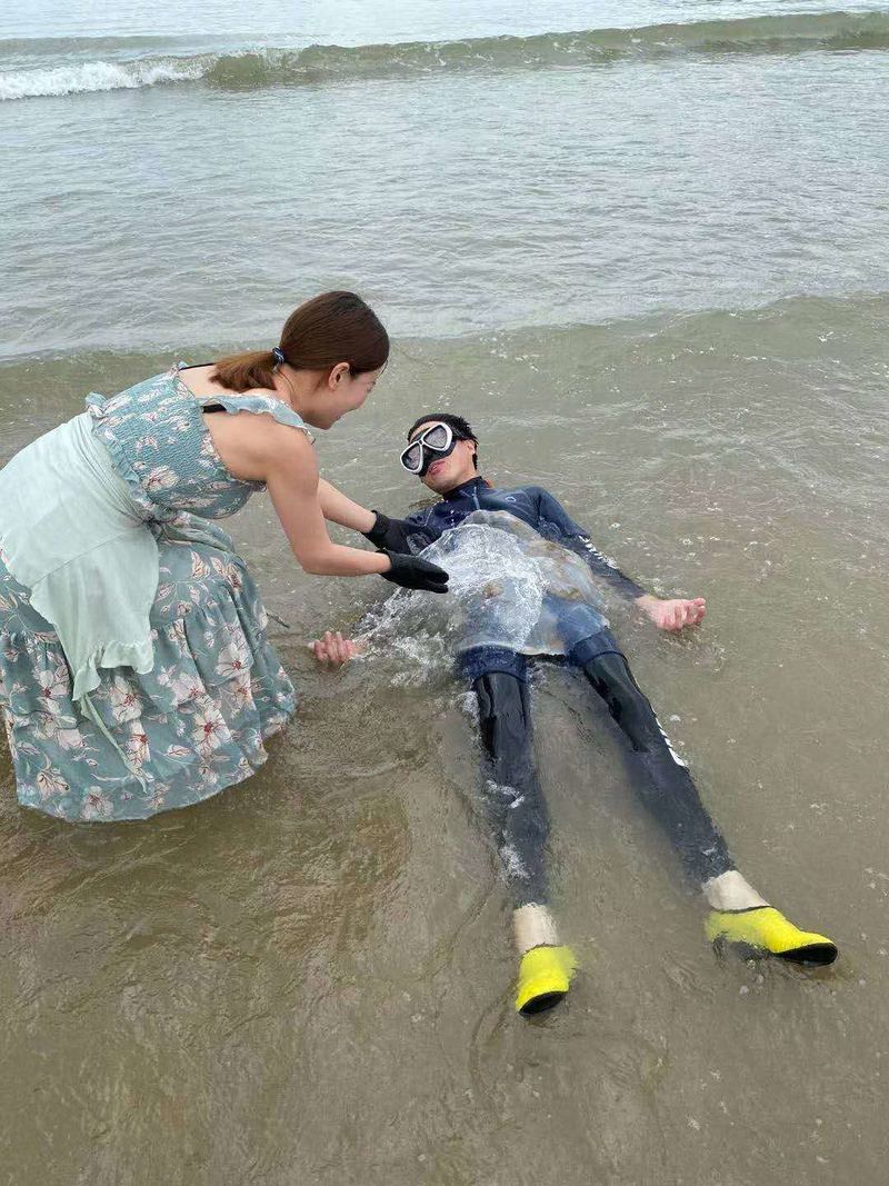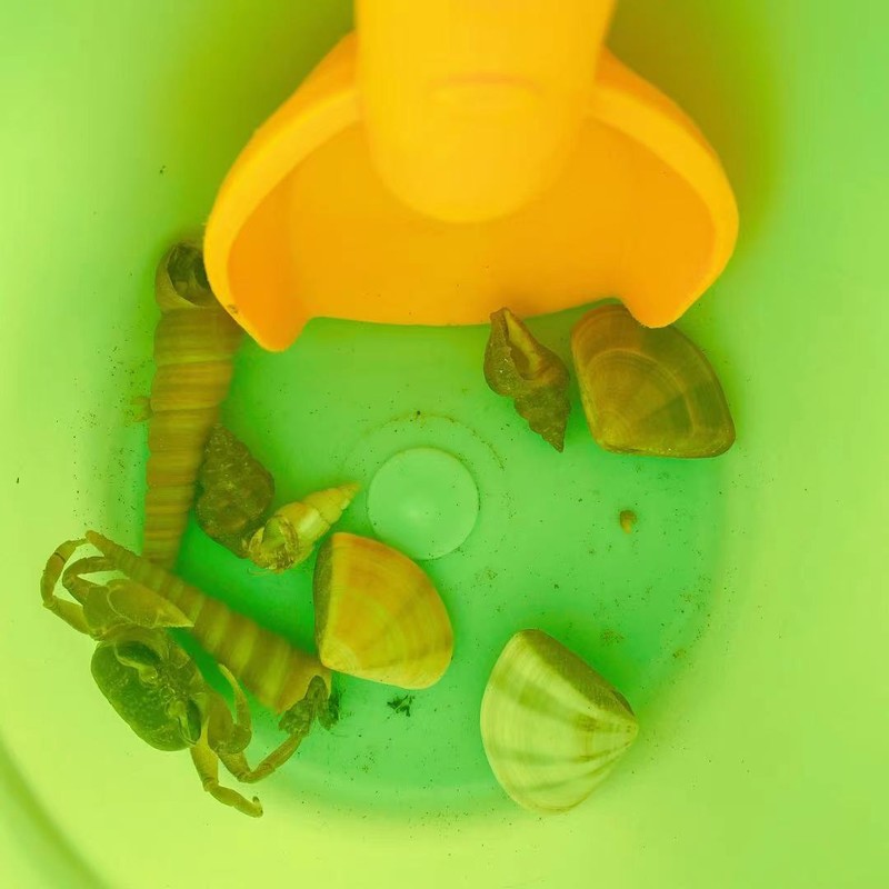 有过赶海的体验吗,就是那种海潮退去,留下来各类海生产品的那种: 早上起床,趁早海潮刚退,来看看大海给带来的礼物,抓海星,捡贝壳,还抓到一个大水母
