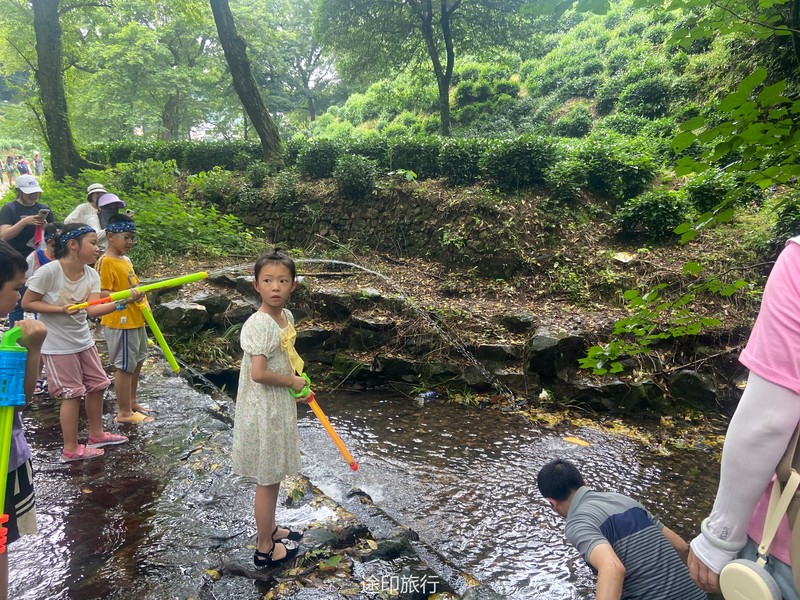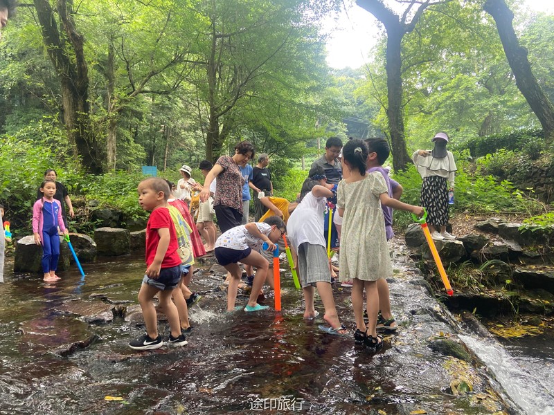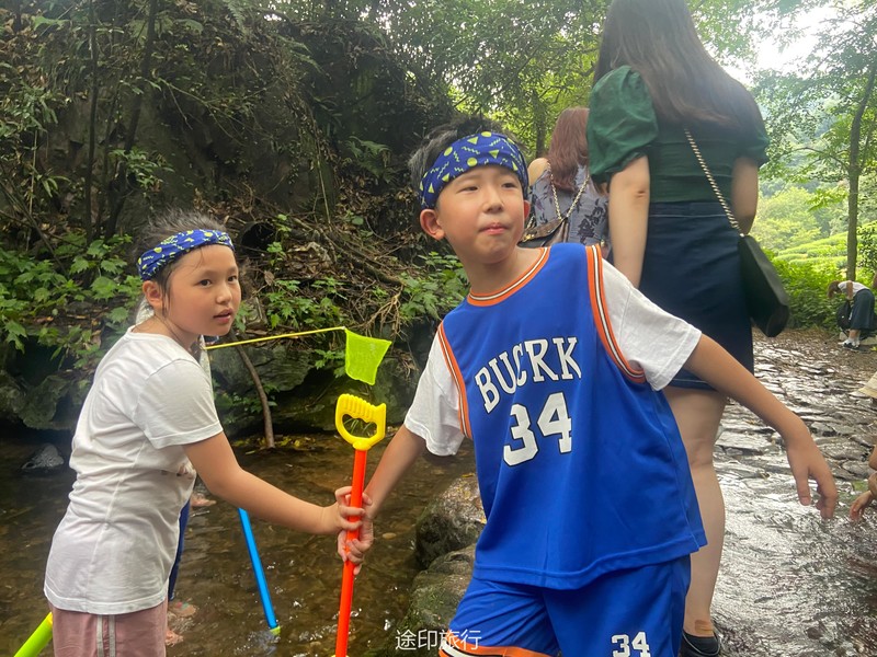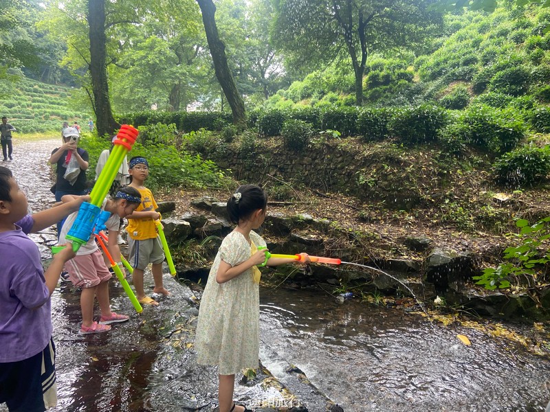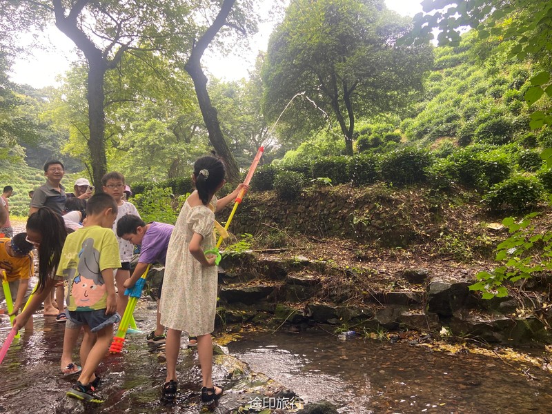 登高望远龙井村,下山以后不远处就是开始有小溪潺潺流淌,好多小朋友们像饿狼扑食一样扑了进去,开始打水仗,玩水枪...