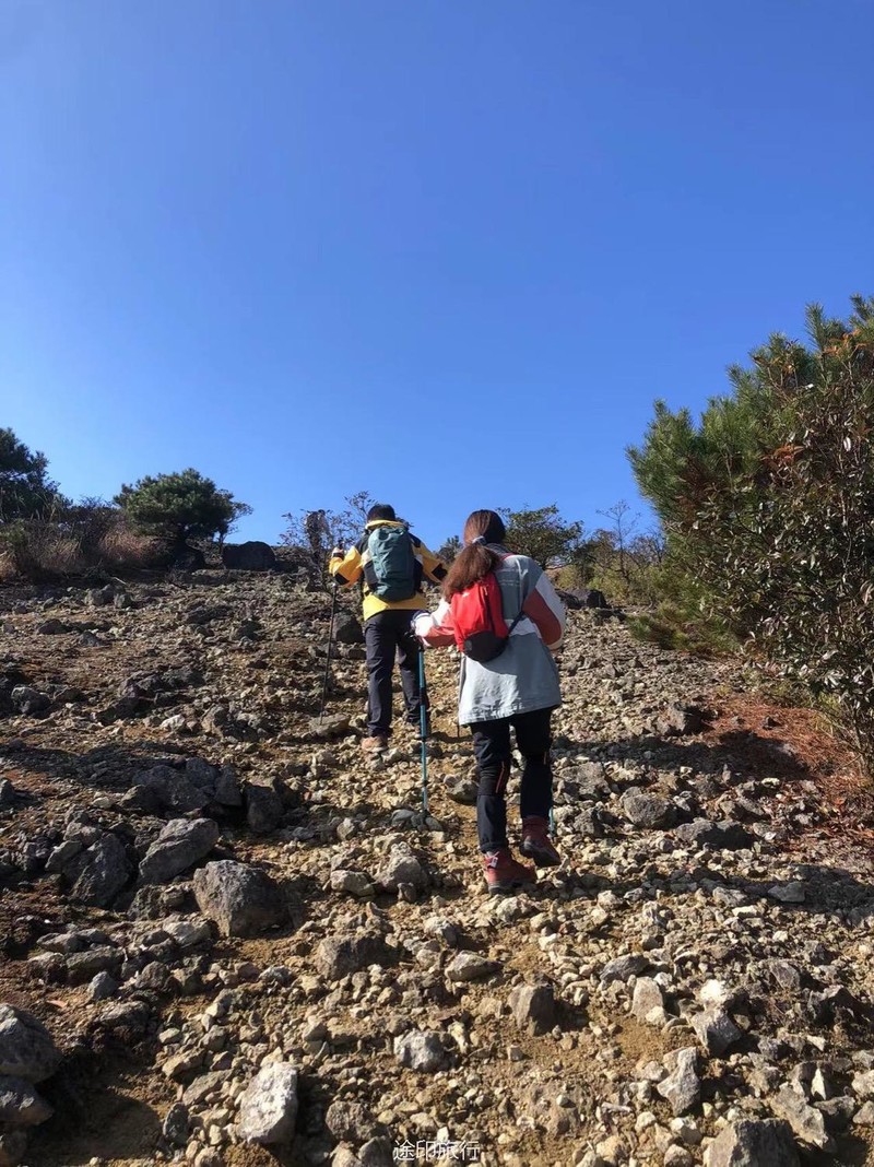 经过了一晚上的休整,原本说很累不走的很多朋友也都跟着一起出发了,第二天的路程一开始的一段拉升的比较厉害,等到了防火道,太阳就慢慢出来了,我们碰到了最好的天气,山上的风景非常的好,视野也非常的开阔,一路上欢声笑语,聊天,逗笑拍照,中午吃饭的时候我们坐了比较特别的自我介绍,下午很快就走完了防火道一路下山。