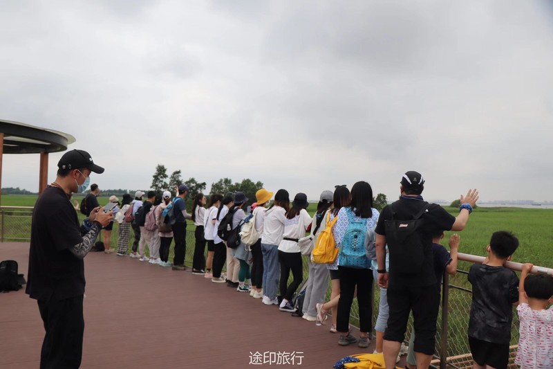 从入口走到江边,一路上有好几处观鸟台,放眼眺望,能看到远处的江水,还有郁郁葱葱的湿地森林。