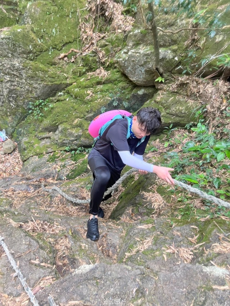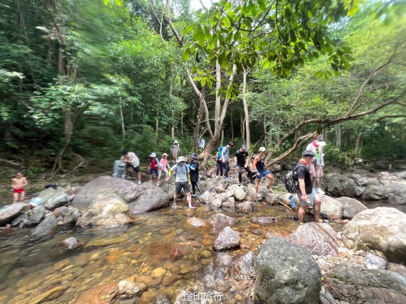 从山脚到里牌楼水库尽头,沿溪而上,就是交坑,这条路较难走,但是跟着领队便不会走错。