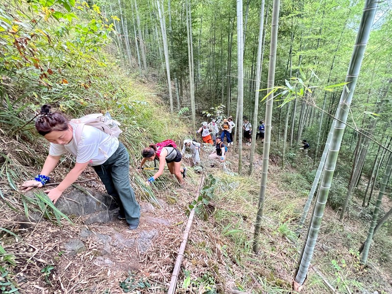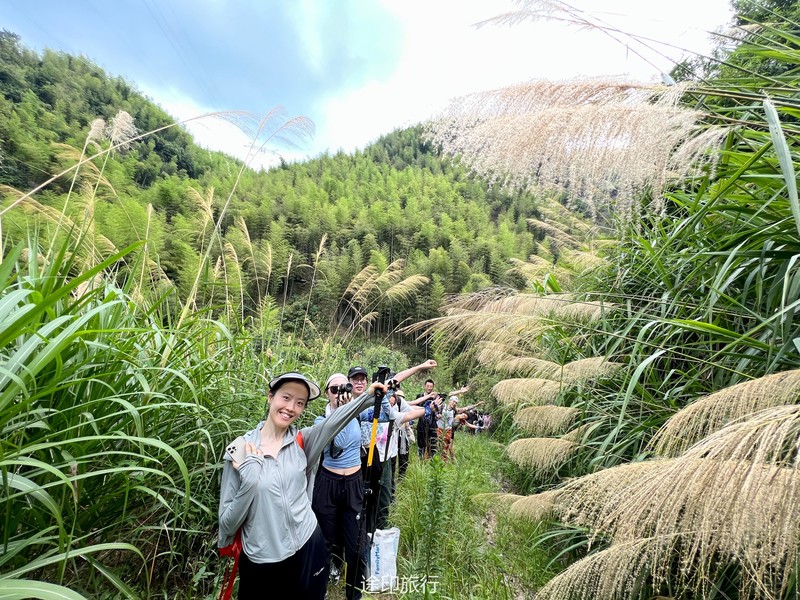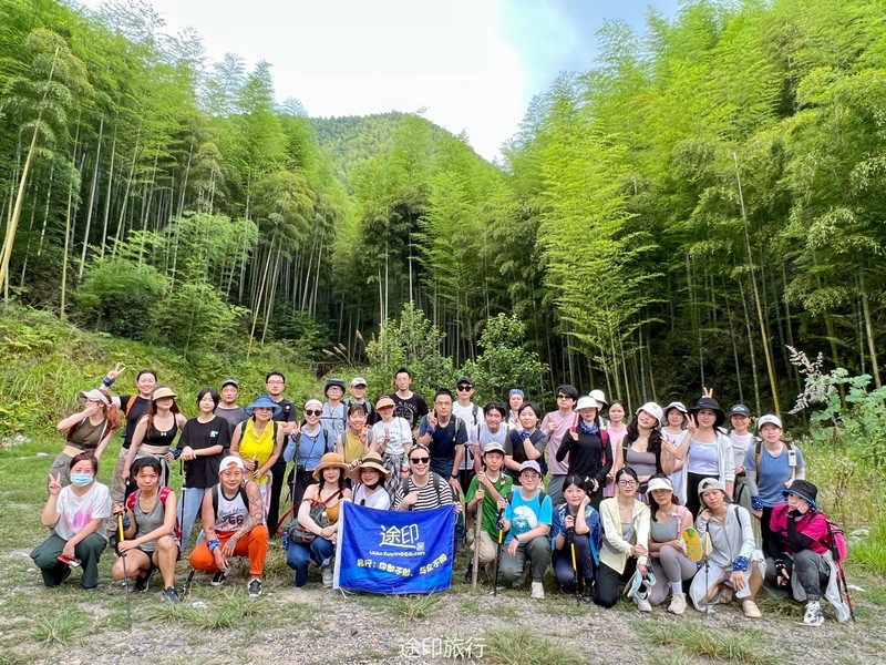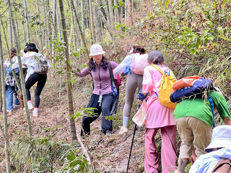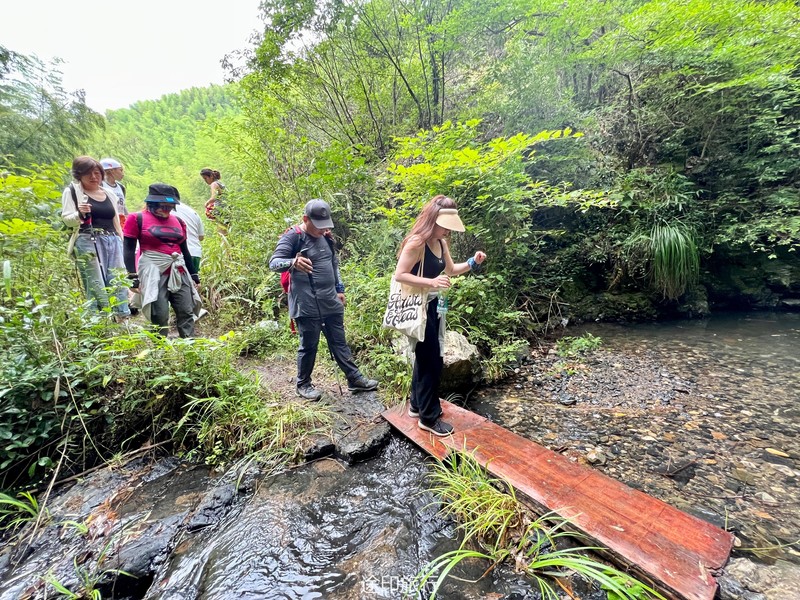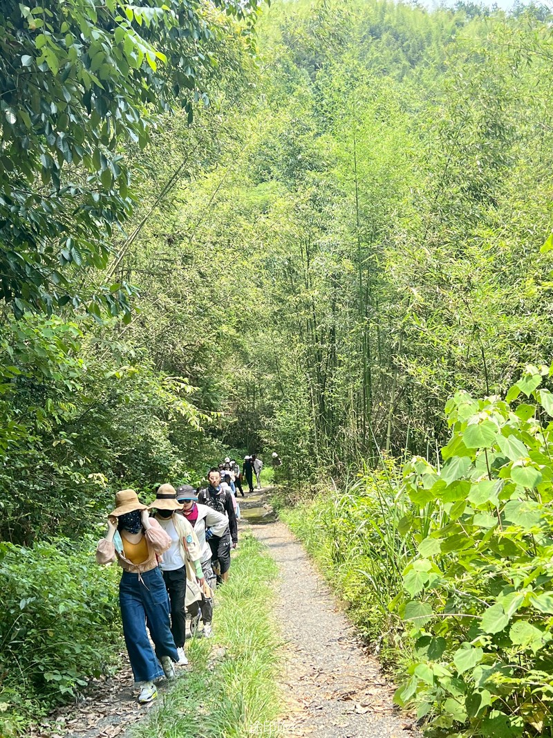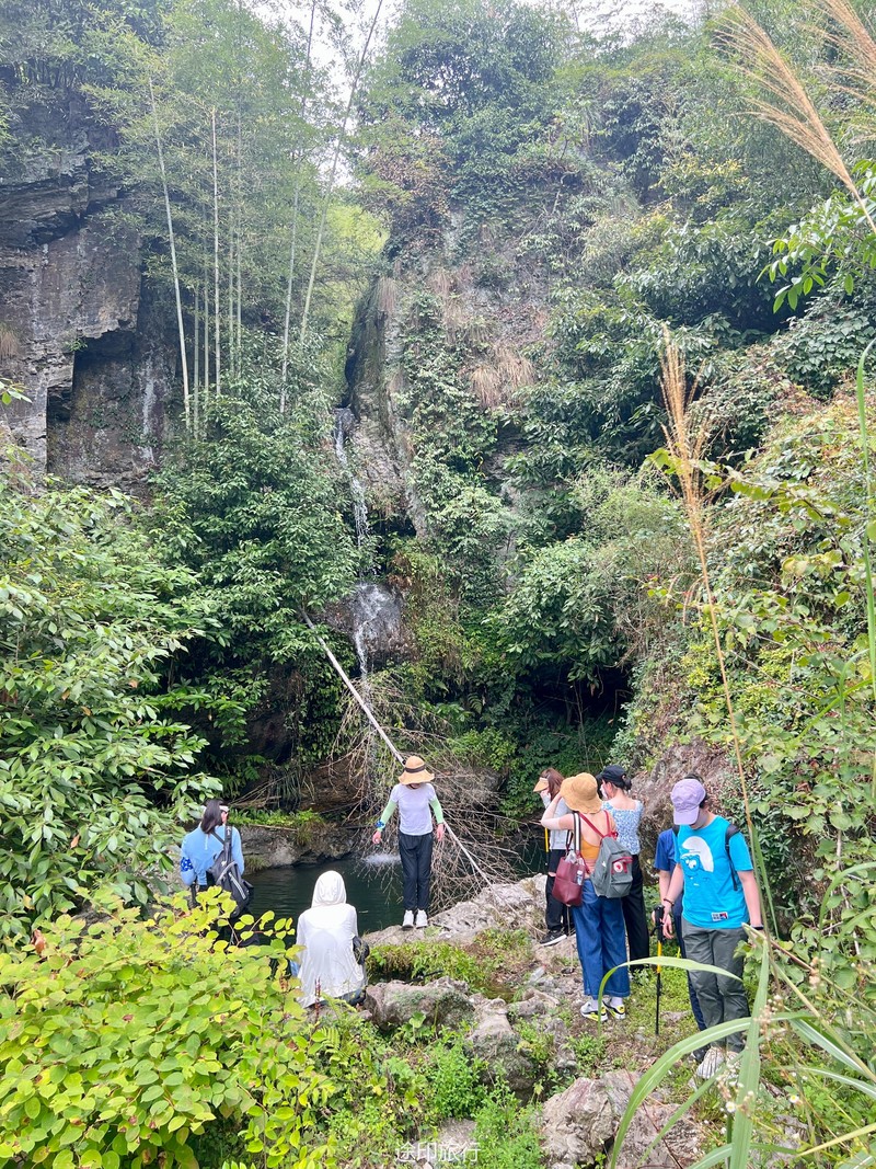 上午,我们一行人开始进山,一路上大家欢声笑语,准备开启一个愉快的休闲线路,不想刚刚开始两公里,37度的高温,给这个行程增加了难度,又热又累,到达第一个瀑布点,我们不得不全体休息,这个瀑布与往年相比,确实小了很多,像一个小一号的倒挂的织布机,不过庆幸还有水,可以洗手降降温。用完午餐,我们继续向前,移步上山,山路越来越陡峭,路上尽是一丛丛的野花野草,爬上一段竹林,山路变得越加陡峭,有一段很难得路段,必须要手脚并用,相互帮衬才能过去,队伍的伙伴都很热心,你拉我推,终于将50个人全部推送上山,看见伙伴们一个个灰头土脸的样子,忍不住大笑起来。终于到达山顶的大公路,有农家可以买水,大家仿佛看到了希望的曙光,沿着公路继续往前,我们将前往今天最大的瀑布,这里有很多私家车是可以开上来的,最大的瀑布也比往年稍微小了一些,但是我们穿越山林竹海,看到这一幕,也是感觉得非常的惬意,毕竟不经历风雨,怎么见彩虹,在正午的阳光下,瀑布泛着金光,像镀了一层金,真是一幅美丽的画卷。