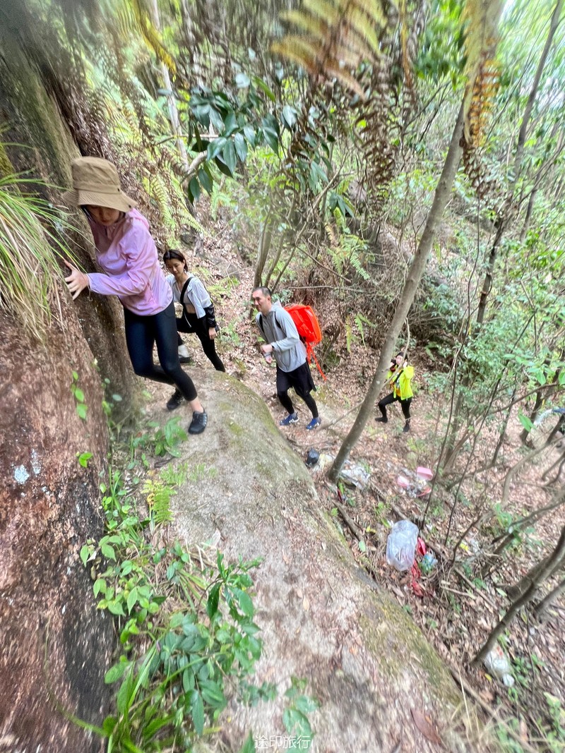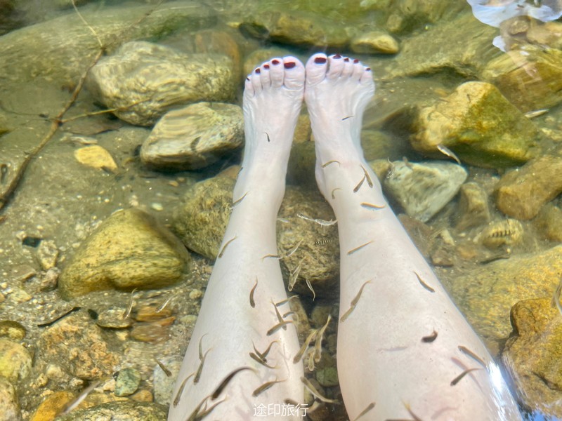 休息片刻,我们继续前行,探索石梁飞瀑的神秘,跨过了水中各种奇奇怪怪的大石头,在第二个大潭休息片刻之后,我们的前行的路只有沿着飞瀑游过去,这对于整个队伍来说,有一定的难度,很多伙伴是游不出去的,经过大家的探索,我们在右边山林处找到一条小径,但是有点高,这是我们向前的唯一选择,于是,我们手拉手,走进了山林里,跨过一个高的石阶,有一段需要贴着墙壁走,胆小的伙伴这时候可不敢低头往下看。走过山林,忽然一座山洞出现在眼前,在如此炎热的夏季,山洞口就像一个天然的空调,小溪从山洞里面流出,里面漆黑一片,但是好奇的我们还是急不可耐的钻进了山洞,因为有风声,所以山洞的另一端应该是通的,由于多年的爬山经验,我们才敢爬进去,否则,冒然闯进山洞可是非常危险的。出了山洞,回到了原来的溯溪线路,溪流清澈,由于队伍拉得比较长,前面的伙伴有一些坐在水里等后面伙伴,一会儿功夫,水里的小鱼就开始游过来,他们好像不怕人,天然的鱼疗池,好不惬意,这也是我们溯溪的最后一段路线,最后,来到一个大桥下面,这是我们今天溯溪的终点,等后面的伙伴全部赶上,我们就走向公路,大巴在这里等我们,往酒店驶去。