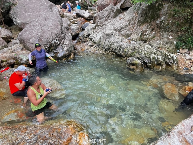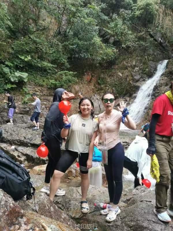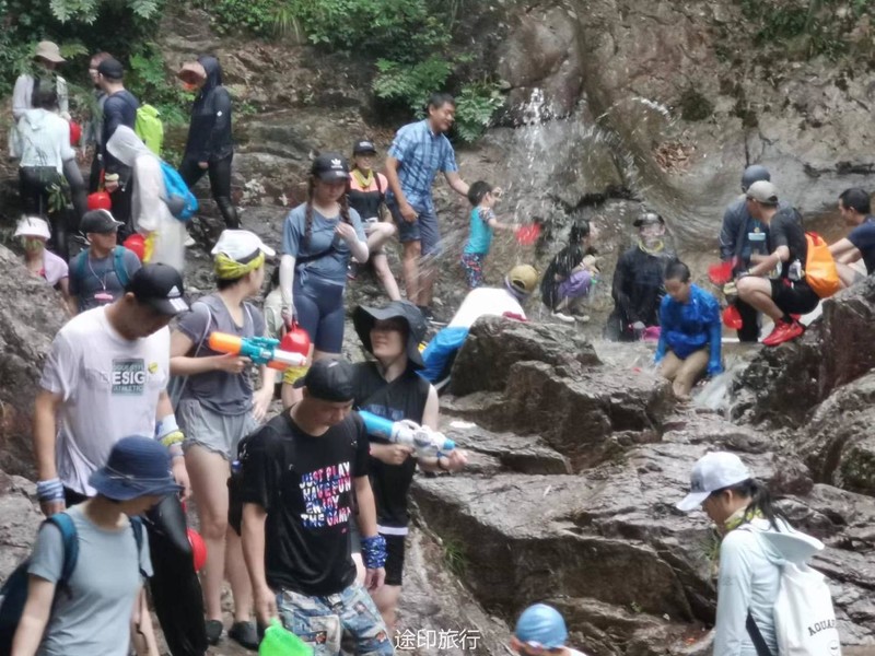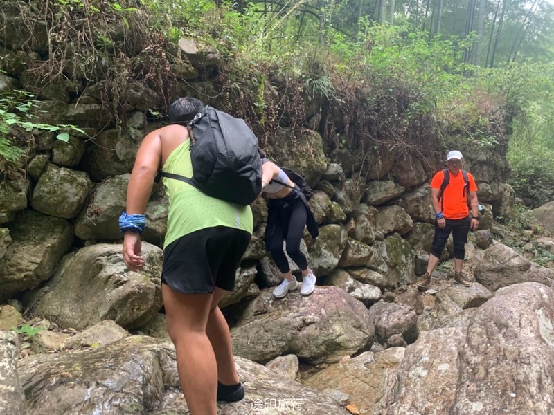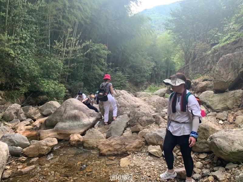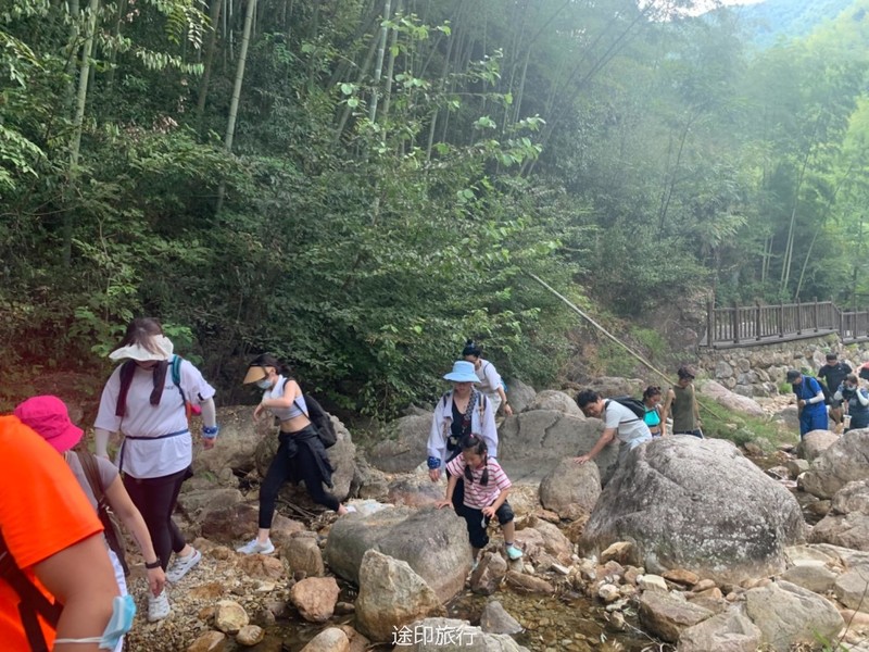 雪花潭景区内近期需要预约,大车超过19人不让开进去了,停在虹桥发电站附近。下车沿着伴山公路走大概小三十分钟可以到达景区入口。景区从下到上有清源牌坊、千年榧王、问石潭、行云亭、水镜台、三叠泉、子母潭、石门涧、清风亭、纸塘遗迹、隐波池、梦雨潭、流水亭、响石山、明月亭、涤心潭、雪花潭景点,统称为“巽溪十八景”。