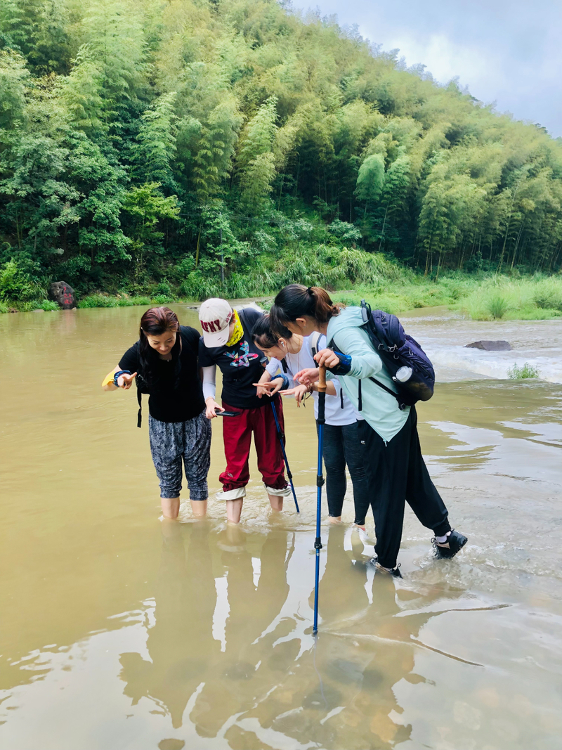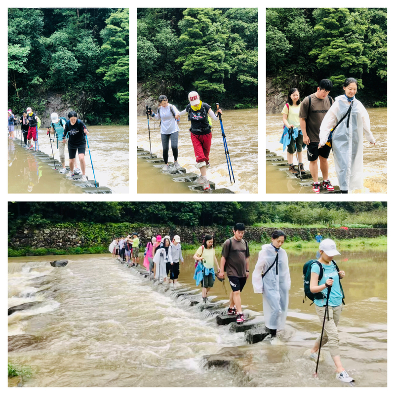 由于“轩岚诺”的影响,这次水流很大,把每个渡口原有的石板路都漫过了。为了大家的安全考虑,所以我们这次只走到第六度【桃花渡】。在过渡的过程中,大家手牵手,一起过渡口。在过了夏天的初秋又玩了一次溯溪,也是很刺激了。