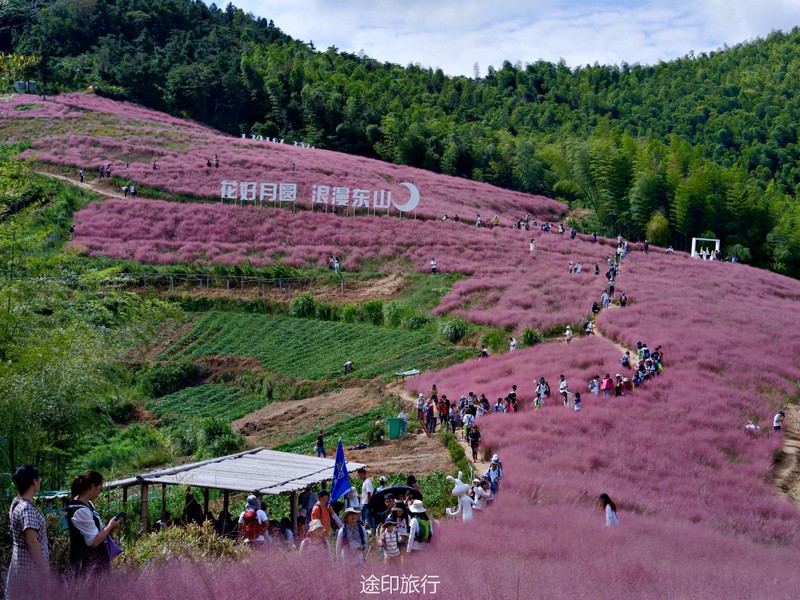 旧时,东山村有个非常仙气的名字叫“月宫山”。粉黛花海就在东山村后海拔500多米高的月宫山,满坡的粉黛乱子草映入眼帘,真的如同登顶月宫仙境。