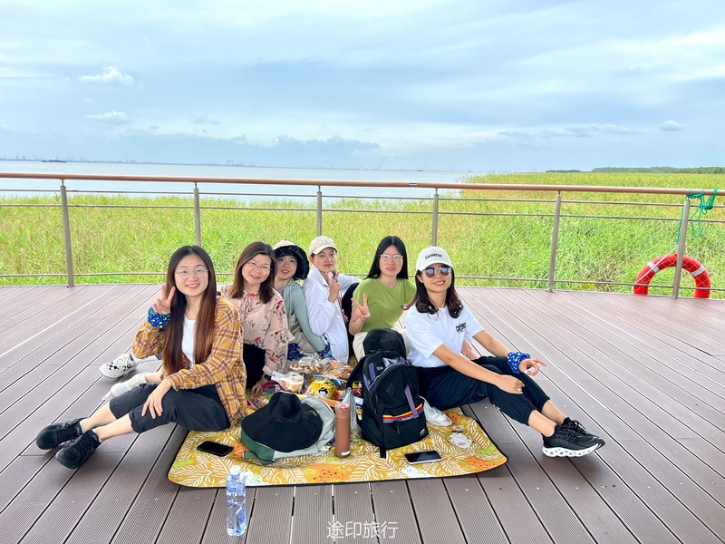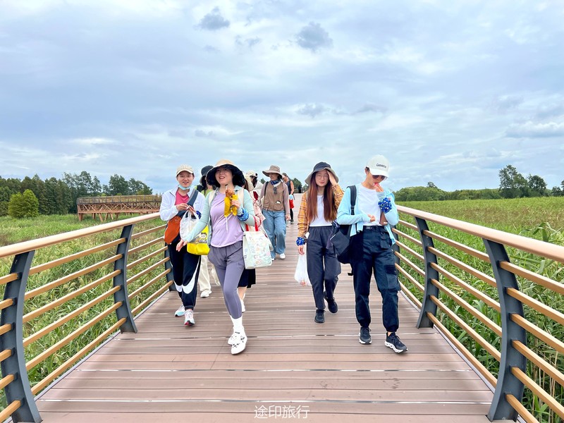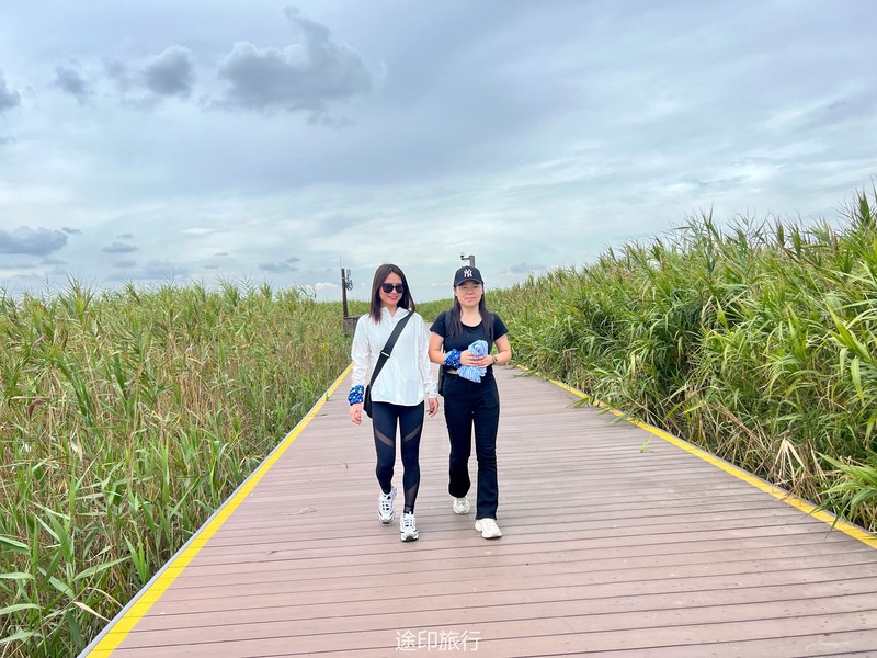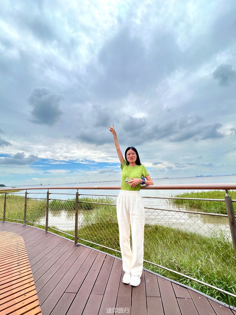 徒步在西沙湿地公园,这几天太阳不晒了,风景也正好,就当给眼睛做一次spa,一进公园大门,抬眼望去,才发觉,公园入口在高处,向里走,都是下坡路段,顺着木栈道延伸出去,中间方向可以先走一段玻璃栈道,然后再顺着木板栈道走向远方。没有丝毫犹豫,抬腿就走向中间。走过玻璃栈道,来到了中央喷泉,这是西沙湿地门口的标志性位置,从这个位置往右手边走,栈道下面全是螃蟹,很多小伙伴们已经挪不动腿了。9月的螃蟹个大,有些已经成黄色。再走5分钟,到达中央平台,这是我们中午休息的地方,在这里解散队伍,小伙伴自由活动,可以去观鸟台登高瞭望滩涂全貌,观赏珍奇鸟类,也可以原地钓螃蟹,都是非常有趣的活动。“一场秋雨一场寒”,熬过了漫漫暑气,天地万物也开始活跃起来,小动物们一改夏日暑气下懒洋洋的状态,开始善动活泼了起来,时不时的看见一些不知名的鸟从天上飞过,地上大片的白鹭,时而飞上天,时而躲进草丛里。成片滩涂更是吸引了不少本土蛸蜞、虾蟹在这里繁衍生息,它们或在芦苇荡里穿行,或在树木根系间栖居,或成群结队地变为湿地独特一景。