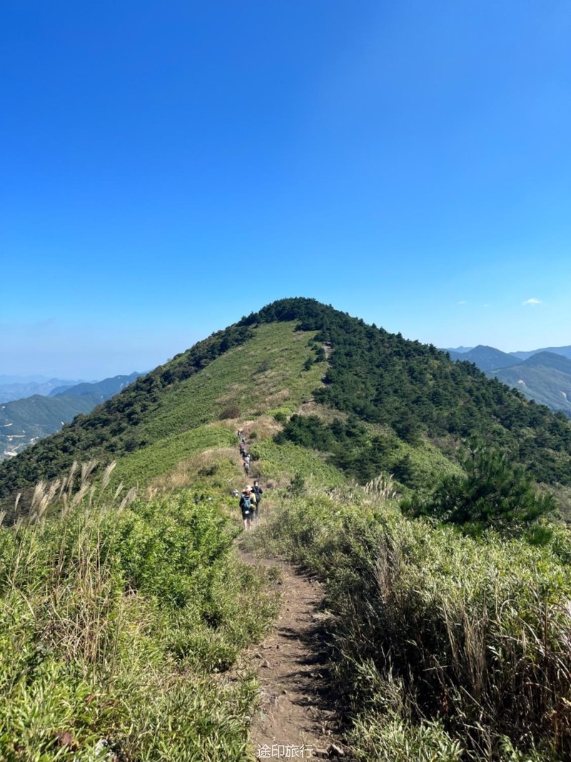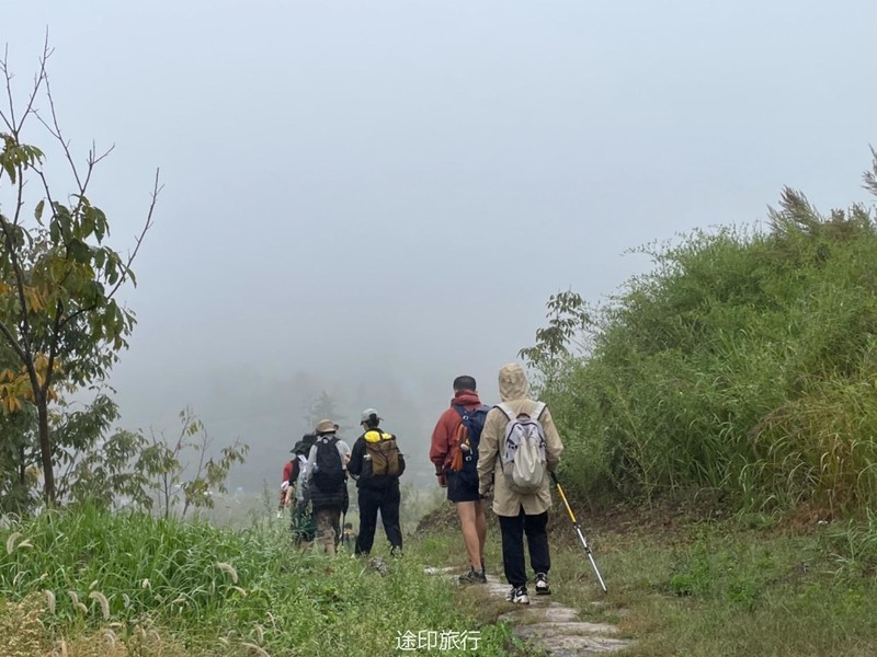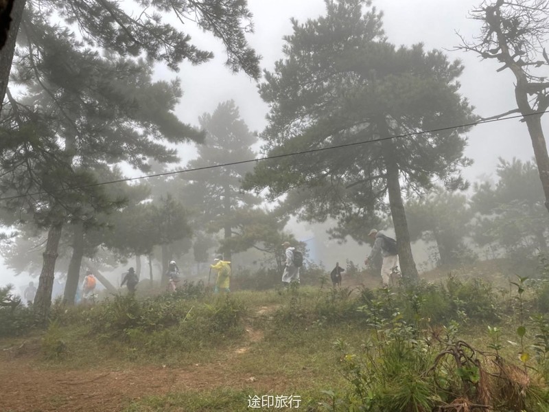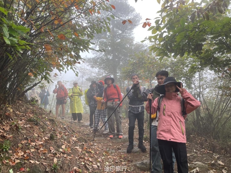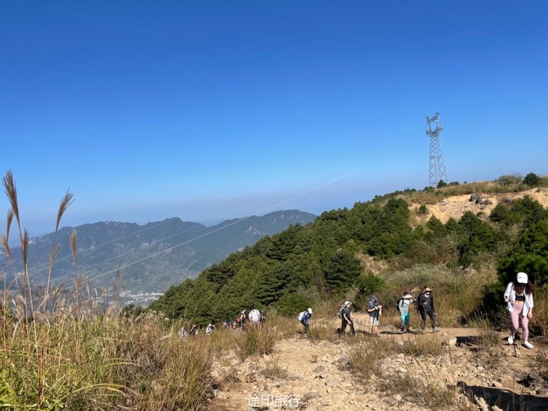 国庆节避堵的最佳选择,就是去山里,因此安排了三尖。在江浙沪徒步圈儿,享有盛名的虐线里边,三尖被称之为华东第三虐,第二虐是七尖,第一虐是千八。 三尖 指的是太子尖、百丈岭、童公尖,地处 浙江 省 临安 市的西面。 整条路线:浪广村出发(海拔800多米) -- 浪广岭停车场(海拔1250米) -- 太子尖山顶(海拔1558米) -- 上马啸岭(海拔1450米左右) -- 中马啸岭(海拔1449米) -- 花石岗(海拔1485米) -- 下马啸岭(海拔1152米) -- 绝望坡 -- 百丈岭(林场宿营地,海拔1334米) -- 大牛粪(海拔1598米) -- 童公尖(海拔1558米) -- 上坪(海拔1558米) -- 浮桥村(终点),整条路线全长大约25公里左右。 我们这次出发前温度骤升,一下子飙到了38度,杭州市直接爆高温橙色预警。我们3号早晨从农家出发,到浪广岭开始徒步。 第一个太子尖就虐到大家了,但是没有人下撤,想完成这次挑战。