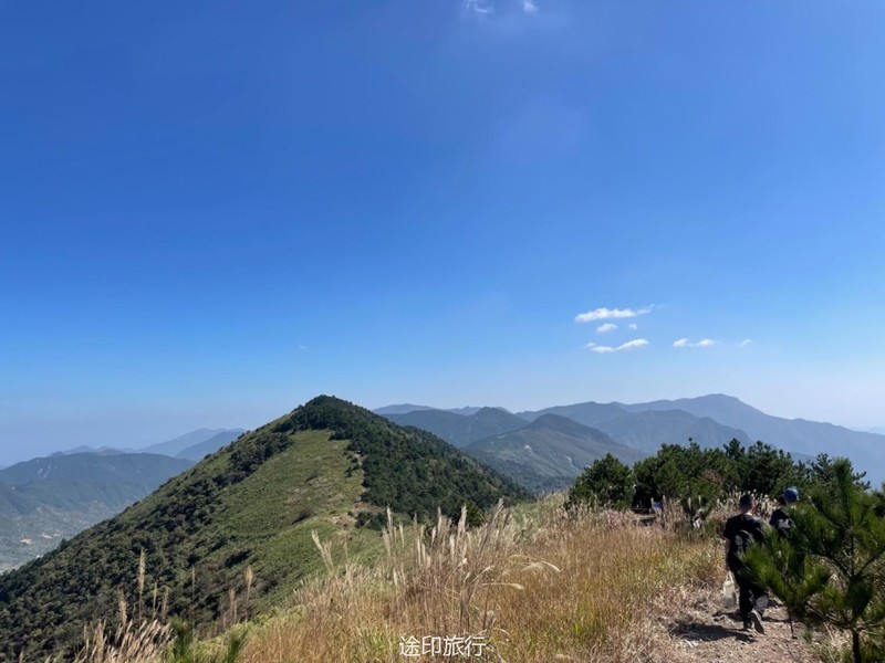 从太子尖开始一段旅程都是在山脊上行走,顶着大太阳和高温,好不畅快。 走到后边,就开始进了树林,有树荫遮挡,瞬间感觉好了很多。在一段持续性密林之后,我们爬到了山坡的树林里,找了比较开阔的地方休息和吃午饭。 午饭后继续出发,为了不走夜路,一路加快步伐前进。但是到了下马啸岭的绝望坡上时是下午两点,大家体力都受到了挑战,水也因高温而消耗掉了五分之四。有人也有些中暑,所以在爬坡一半的时候停下来原地休息半小时。 休息过后大家的状态好转了,所以继续爬坡,但是后半程的爬坡并没有很轻松,边休息边走,一直到四点左右再开始提速。 后半程的难度不大,但是距离也不短,加上大家太渴,所以急需水源。幸运的是在濒临弹尽粮绝之