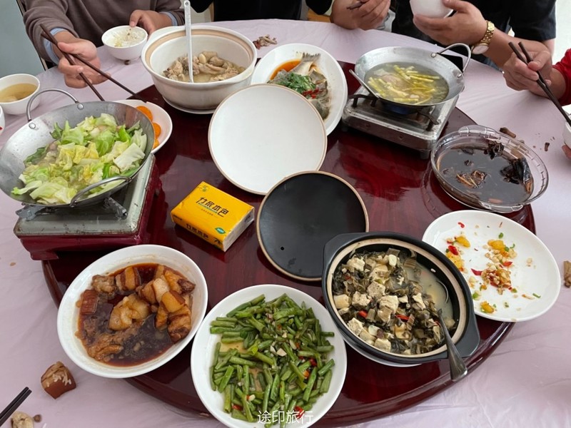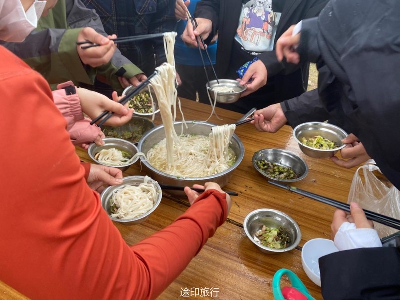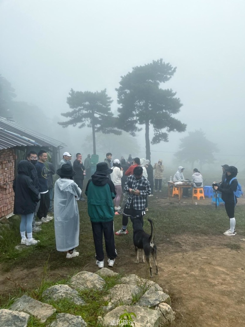 第二天在树林里细碎的风声和绵密细雨里醒来,营地周围起了大雾,整个山林都显得格外静谧。 在一顿圆桌早餐面条以后,一部分人继续上山爬童公尖,第一天累了的队员选择了下撤,在山下等大家下来一起去农家吃饭,爬山后的饭格外的香,吃饱饱后心满意足地启程回家。 35个人都又有了一次特别的经历。