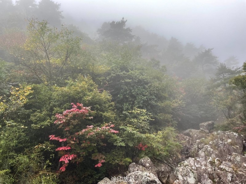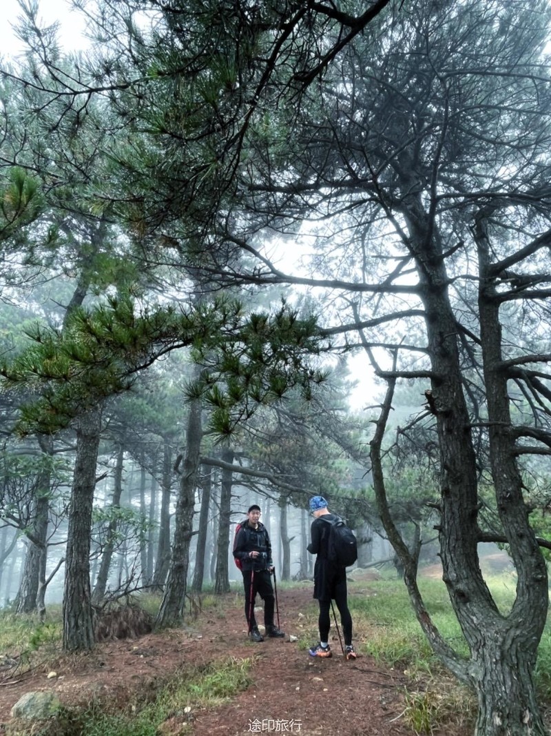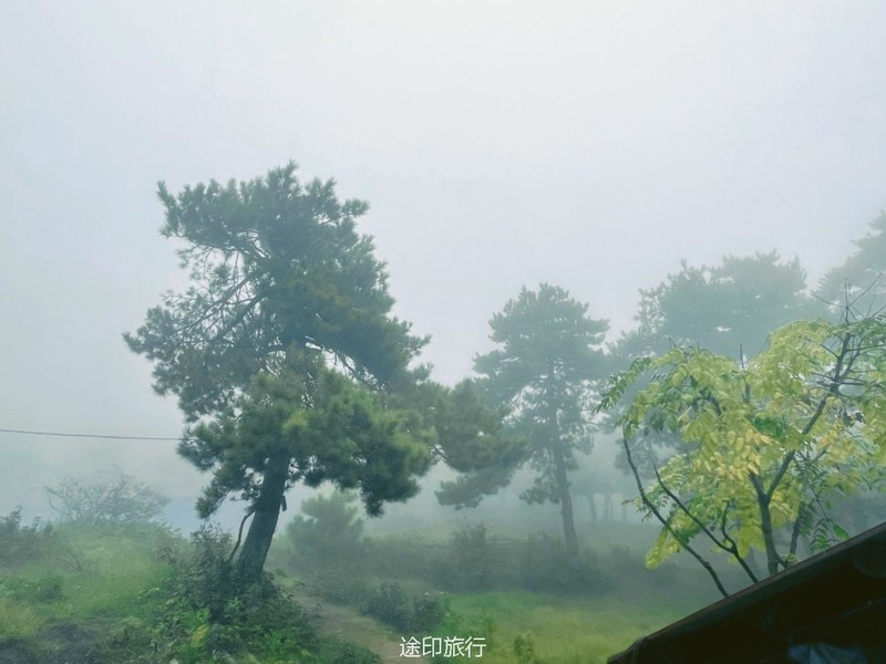 第二天在树林里细碎的风声和绵密细雨里醒来,营地周围起了大雾,整个山林都显得格外