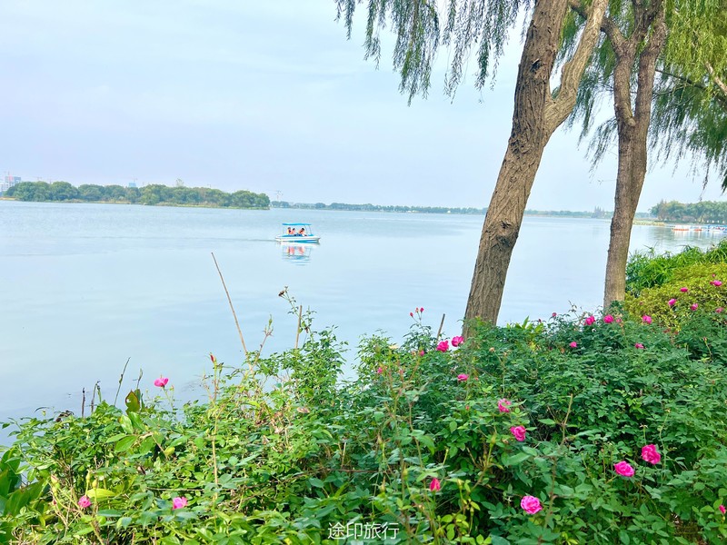 沿着唯一一条木栈道往前走,在人挤人中卡位找拍摄角度也是有点辛苦,幸运的是最近公园限行,没有之前的人多,游客们可以挤出位置互相拍照。这个季节的池杉本来就是红棕色系了,道具特地选了白色带点黄色,跳得出又不突兀。人像模式对焦木桩和白色救生圈交界处,虚掉后面成片杉树林,拍出来就会有种油画背景的感觉,不会因为颜色杂而过于凌乱。美图秀秀调整一下色彩饱和度对比度,成片就很美了。看着照片有种独自漫步在杉树林里沐浴阳光享受静谧的感觉。为了拍出合心意的佳作,长枪短炮的摄影师蹲着跪着坐着只为了尝试各种角度拍摄,水杉景区打卡结束,我们开始原路返回。虽然景色实在很美,但是终要离开。归途路上,我们继续欣赏着沿途的风景,拍拍摇曳的芦苇,看看泛着夕阳余晖的湖面,吹吹郊野深秋微凉的风。