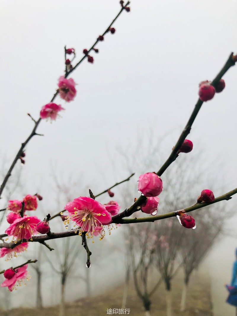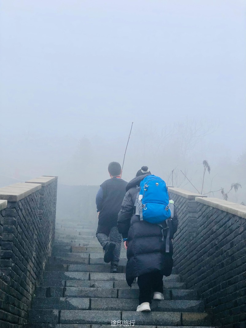 在这里游玩和午饭休息调整后,我们开始游玩小长城。云雾的天气,犹如仙境般;万物在其中若隐若现,为小长城和寺庙带来了一些神秘感。呼吸着新鲜湿润的空气,漫步在长城之上,沿途开放的梅花更是增添了几分春日的色彩。