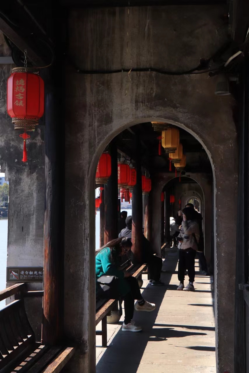 塘栖古镇一大运河上的杭州北门户,因运河而兴盛,明清时期,可谓"江南十大名镇"之首,现在属于4A级景区,仍是典型的江南水乡。古镇不大,走走停停,逛吃逛吃。广济桥犹如古镇的灵魂,南北向横跨于京杭大运河上,是古运河上仅存的一座七孔石拱桥,也是大运河上保存规模最大的薄墩联拱石桥。在运河的北面基本都是特色的商店,在运河南面是一些特色餐厅。上午我们抵达这里吃完午饭,慵懒的阳光,坐在美人靠上静静地发呆,即使是虚度也很美好,
