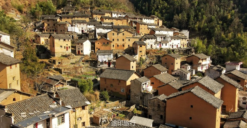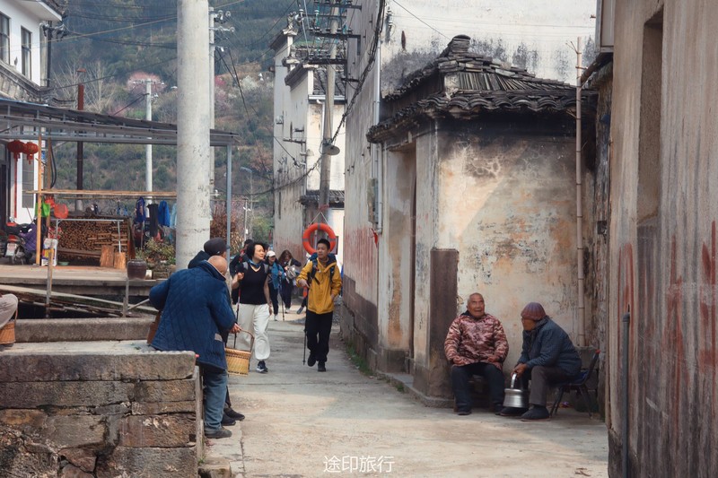 徒步在村中的古道