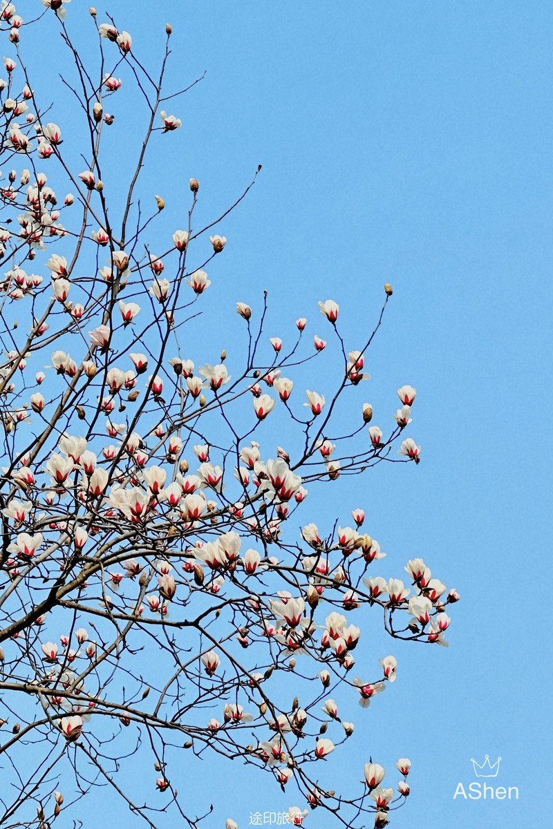 接下来我们来到了新建村梅花谷,一进入花谷,便被一片梅花芬芳所迎接。山坡上,各种颜色的梅花点缀其中,红色、白色、粉色的梅花交相辉映,形成了一片缤纷多彩的花海。走进花谷中心,这里有两个山坡是梅花最为集中的区域,各种品种的梅花都在这里盛开,还有玉兰花也在这里争奇斗艳,色彩缤纷,香气四溢。这个时节的梅花刚过盛开时节,地上处处落着梅花花瓣,仿佛诉说着之前的梅花竞相汇聚。