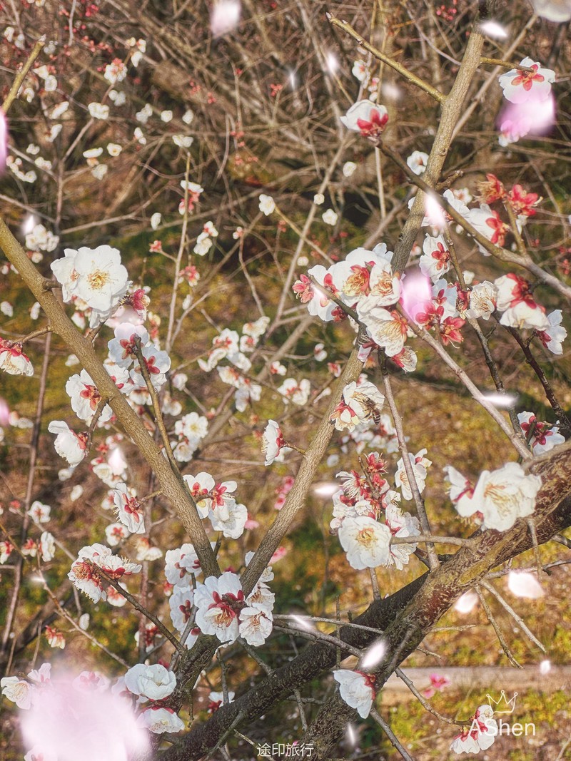 一进门,便被童话小火车所吸引,乘坐着童话小火车,顺着轨道长约1500米的路线,穿梭于山林之间,欣赏着自然美景,感受到大自然的魅力和无穷的魔力。继续往里走,来到千亩梅花观赏园,只见漫山遍野的梅花竞相绽放,让人陶醉其中。我沿着原枕木观光栈道,欣赏着这片美景,享受着大自然的恩赐。