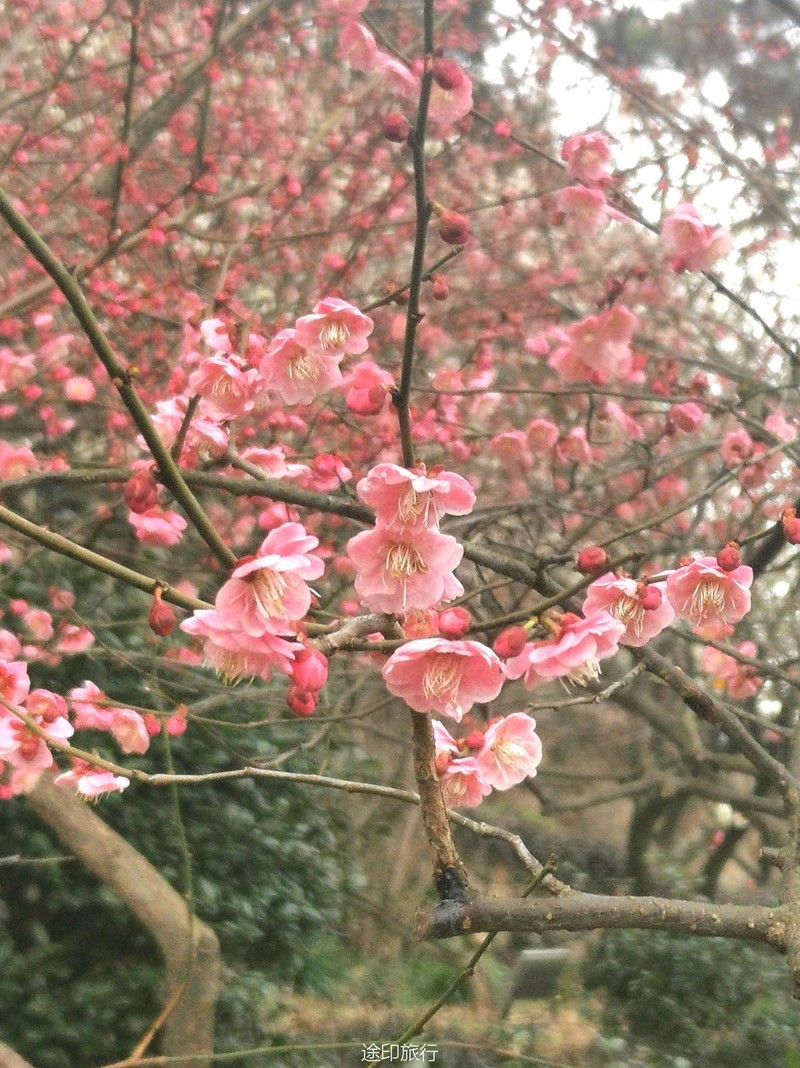 三尖穿越下山后经过小巷,各种小吃美食,热闹非凡,徒步至香雪海景区开始赏梅,整个景区分为3个部分,山下梅林,盆栽区,观梅山,最佳赏梅位置处于半山腰梅花亭下,千树万树的白粉色梅花开遍满山,无限浪漫~~~