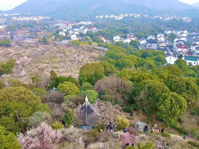徒徒步路线比较轻松简单,沿途风景都很漂亮,属于是看湖爬山赏梅三不误,穿过茶园登顶米堆山,可以俯瞰太湖和光福全景。 光福是个非常具有江南特色的小村落,白墙黑瓦的,具有几千年历史,也是苏绣的发源地之一,到处充满着古朴气息,没有过多的商业感,再加上很多独特的景观和名胜古迹,使这里的建筑也充满特色,拥有难得的宁静之感。