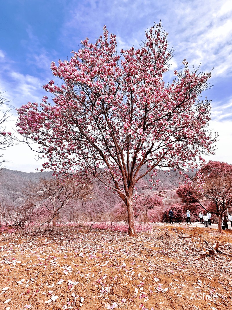 我们在11点到达盐帮古道的起点,整装出发。上山的路比较平缓,据说原来的路还是很难走的,后来有人出钱给道路铺上了石头,还建起了歇脚的亭子,才让这条路好走很多。盐帮古道上的山路古朴,远离人群。玉兰花、油菜花、争相开放,山林之间,清风拂面,仿佛置身于一片净土。