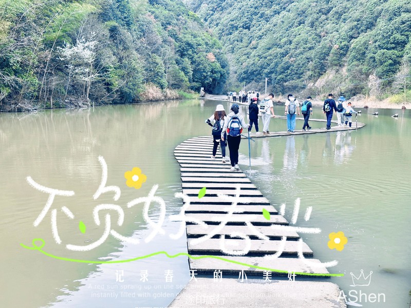 整个旅程中,有山路有水路,最具特色的当属溪水上的十八个渡口,据说每个渡口都有一个美丽的故事。我们沿着溪流上的石头桥前行,一路上说说笑笑,拍照留念,这里景色优美,每一处都值得打卡。让人惊讶的是这里不仅有供人行走的渡口,还有供车辆穿过的溪流的通道,人与车的并行,在这优美的大自然中别有风味。