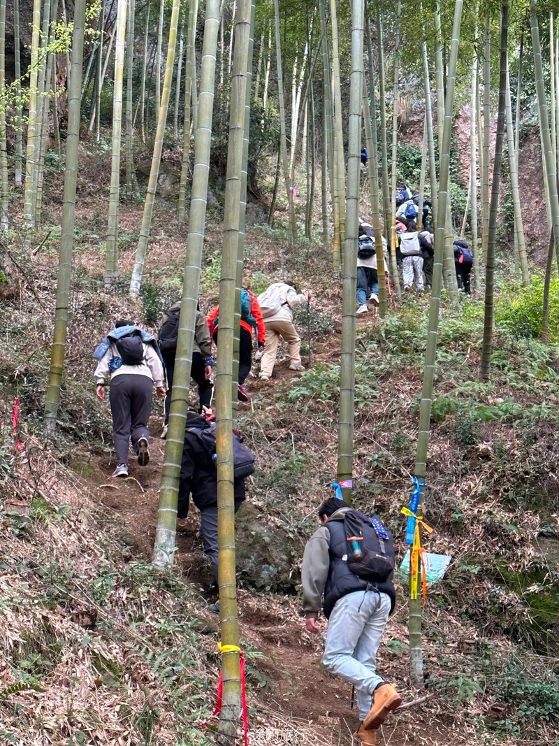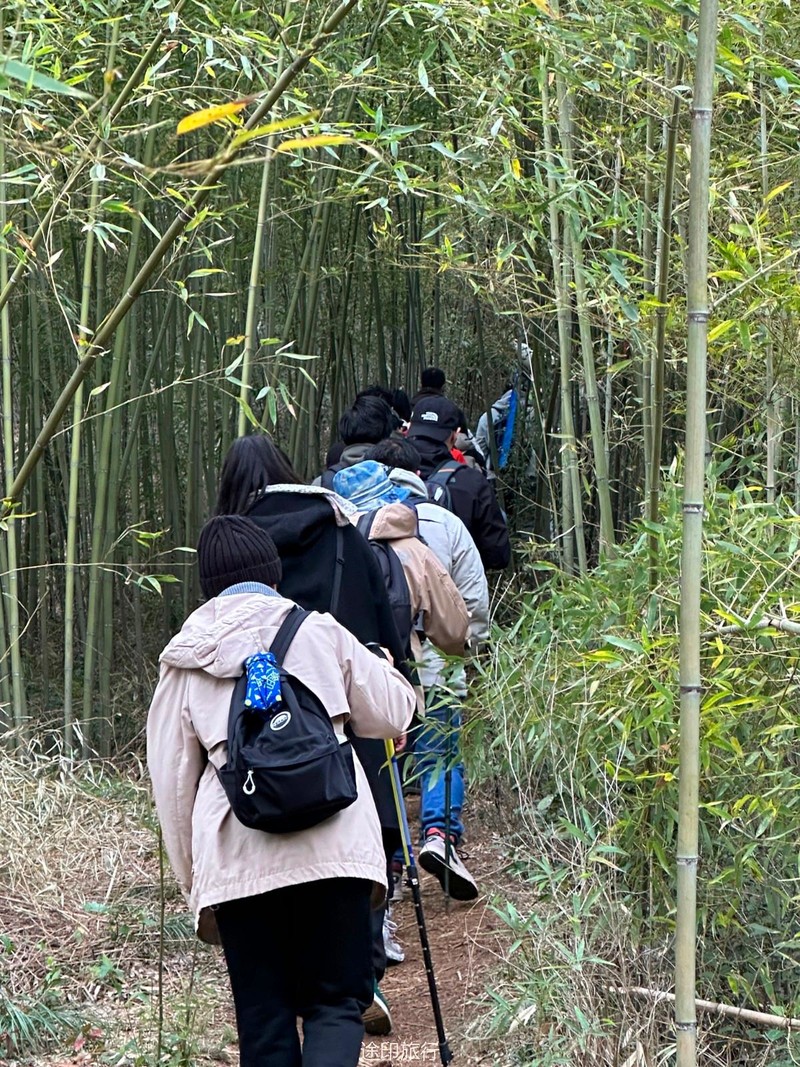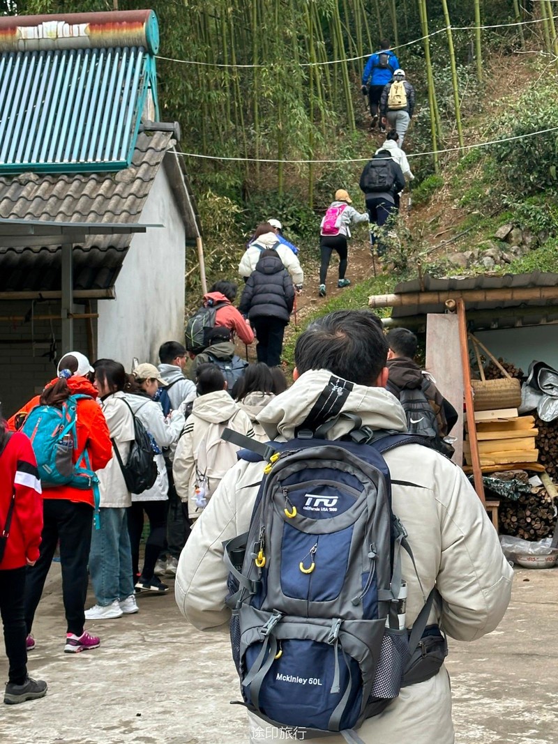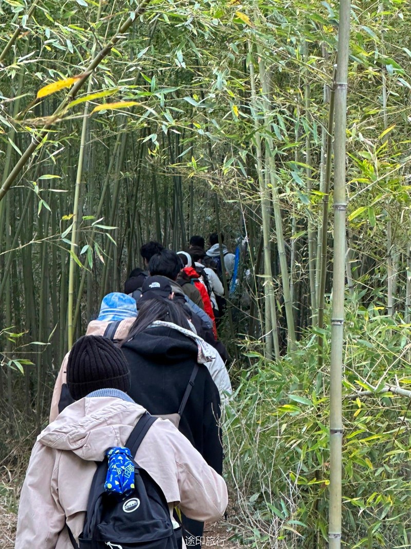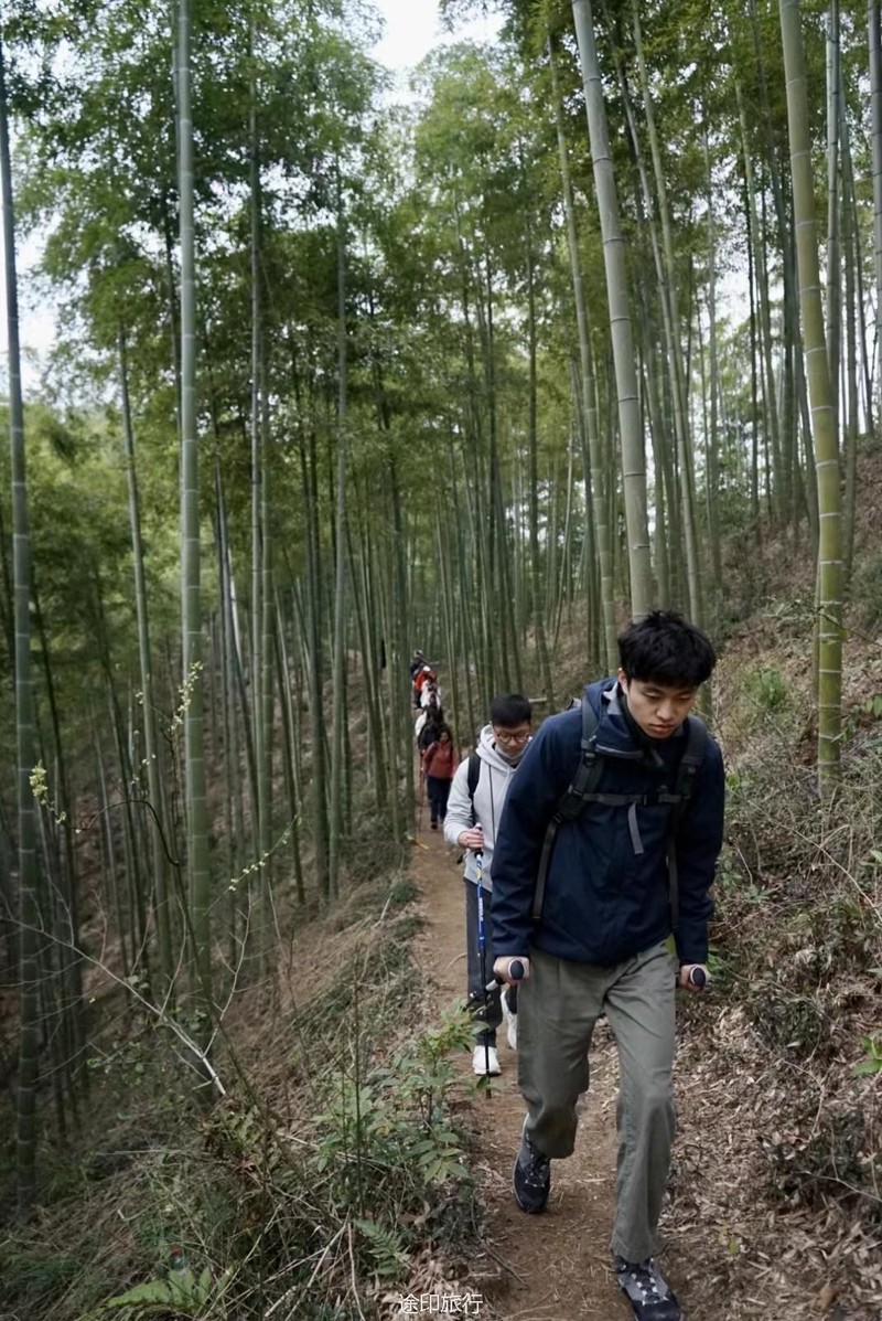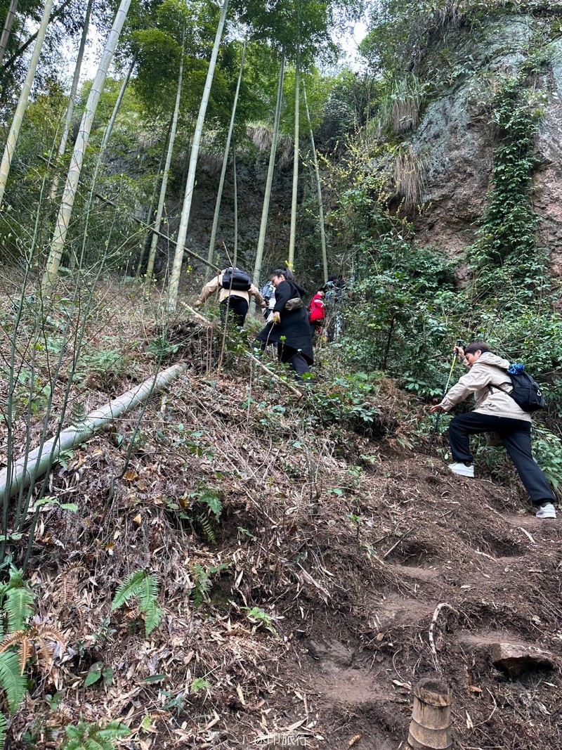 三月的天气有一丝微冷,一行人一早出发,不时来到了山脚下,进山口在一户农家的院子里面,走上去时候一排排整齐的竹林,大约一刻钟后就来到了景点一线天,队伍排列成长蛇行陆续通过来到了一处视野开阔的山脊,短暂休整拍照后沿着竹林下坡来到了土地庙,再沿着小路往上来到了刺激的爬石头,一个个陆陆续续爬上后,沿着山脊继续向上,来到了今天最高点,在这短暂休息后,沿着古道一路下山,大约1个小时左右后,来到了小九寨,到的早的人已经在这玩起了游戏,等全部人到齐后拍了合照后下山返程