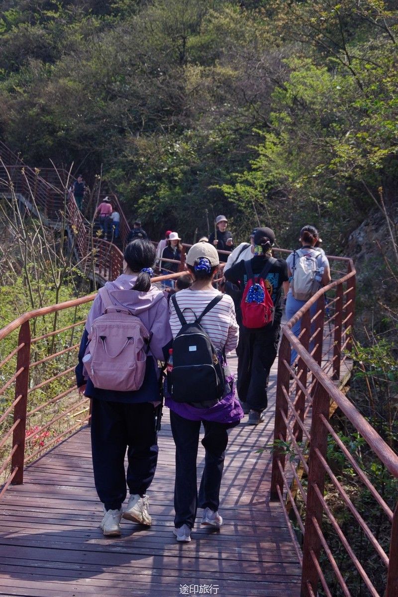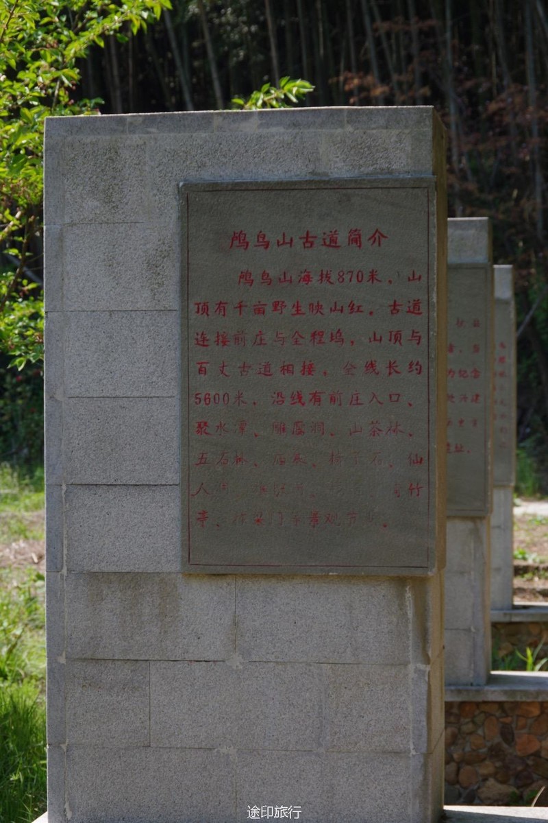 整个古道主路线约8公里,一共有3个入口,罗窖坞、泗溪、九东山。每年到四月份开始,漫山的杜鹃花争相开放,甚是壮观。