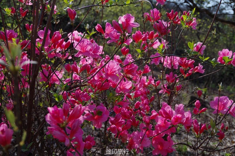鸬鸟山还没有被开发,攀登鸬鸟山充满着自然和野趣,在山林土路中徒步,攀爬,踩着落叶,闻着花香,呼吸山里略带湿润的空气,顿觉神清气爽。郁郁葱葱的竹海,让你充分领略了春天的气息。