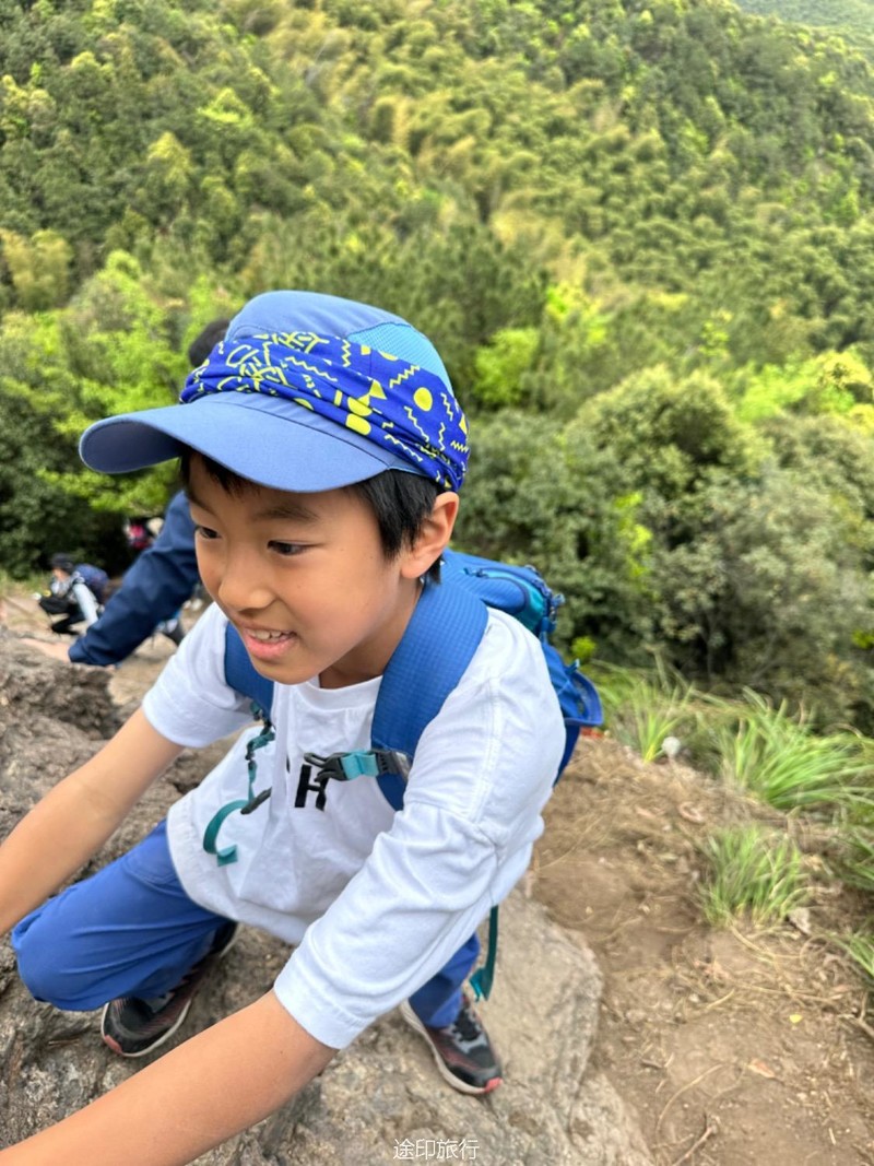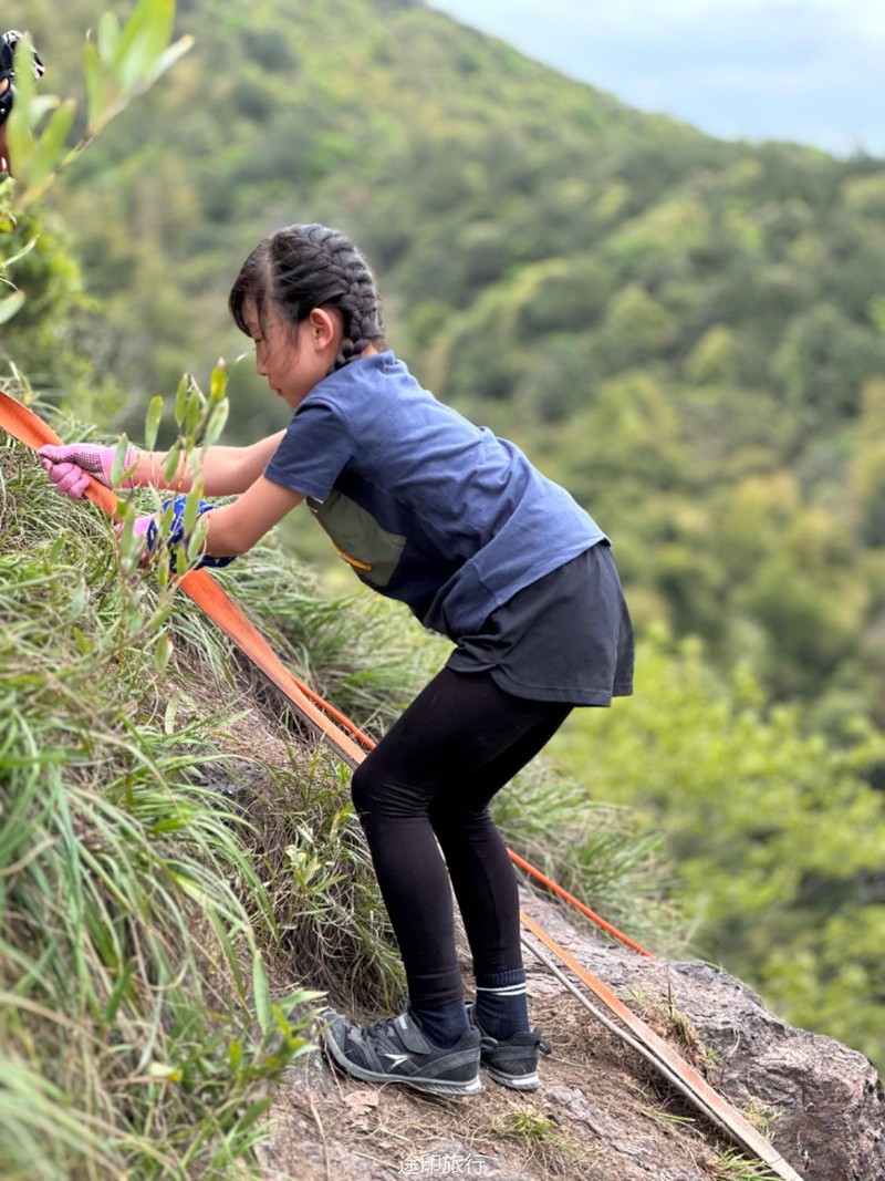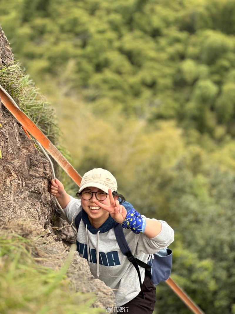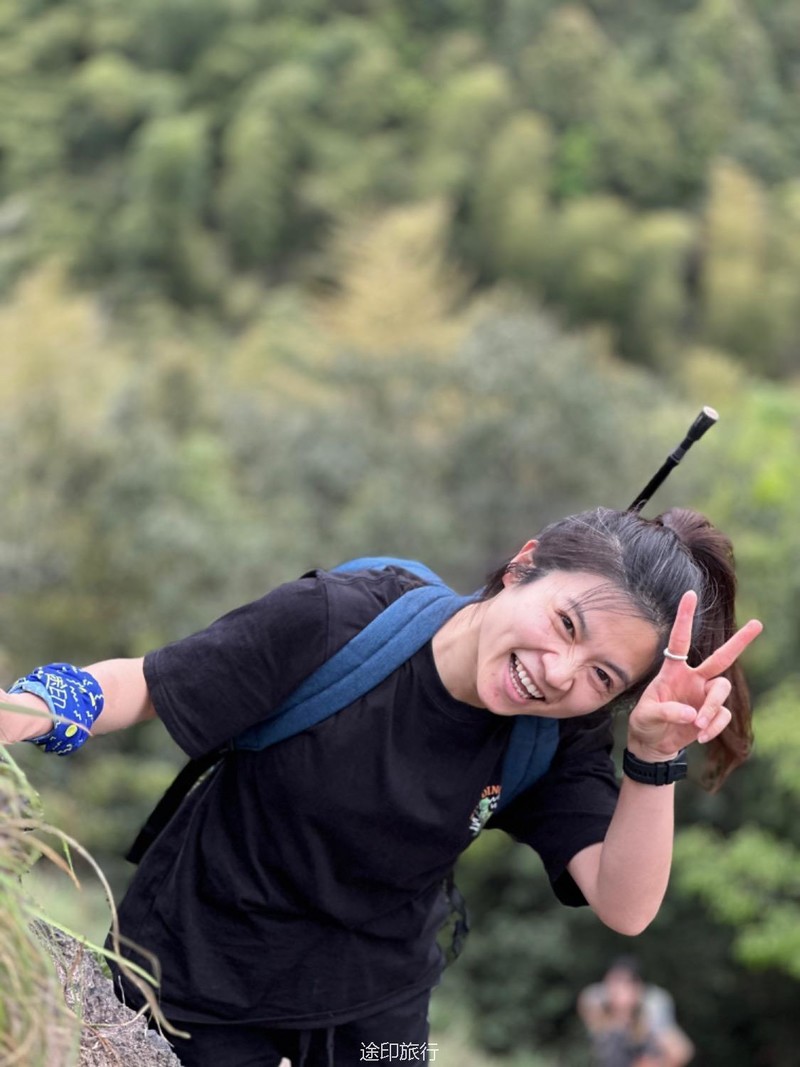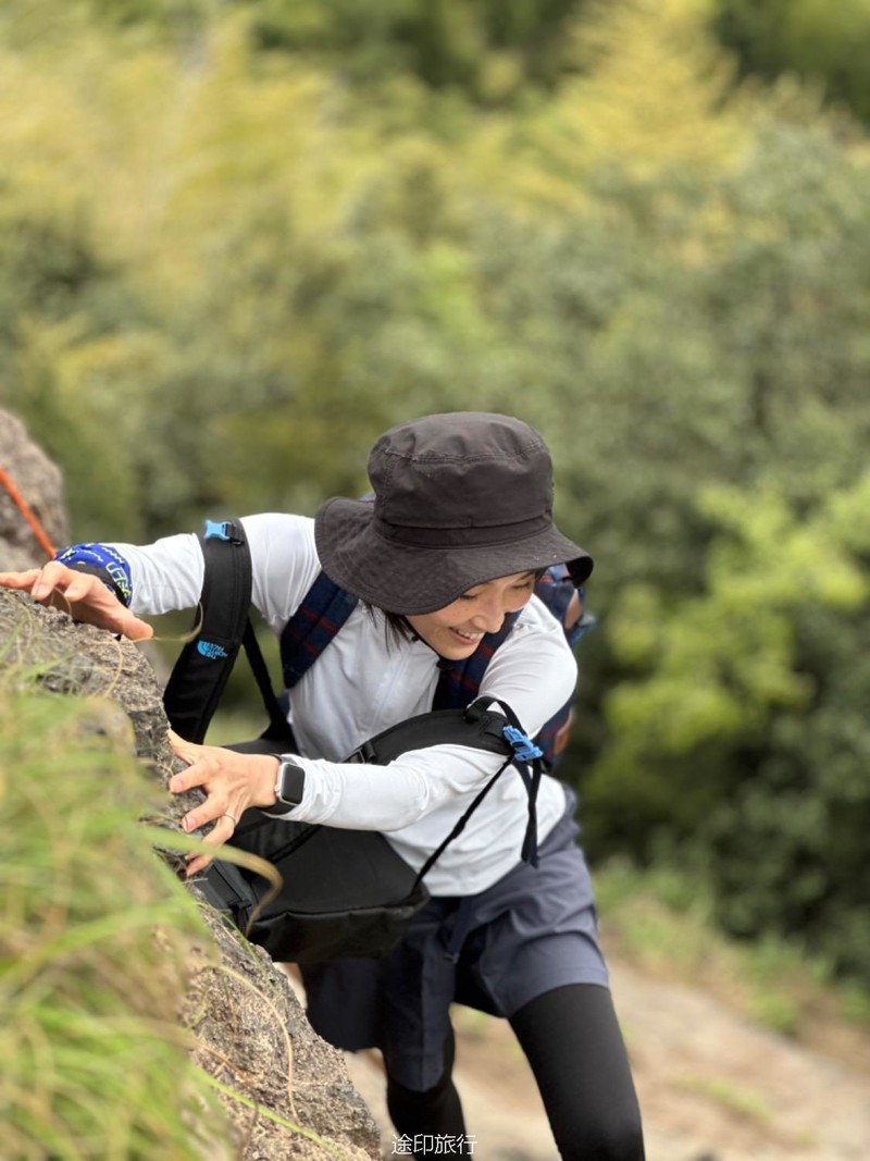 大巴送我们到了徒步起点,我们直接开始上山。走过一片竹林。便来到了石洞,石洞不是很高,需要弯腰,加上石洞出口又比较陡,所以这里还是需要小心的。接下来我们就到了一个平台,这里视野开阔,大家短暂休息。继续爬山。接下来就是下陡坡了。很多队员是新手,还好准备了绳子,方便了不少。