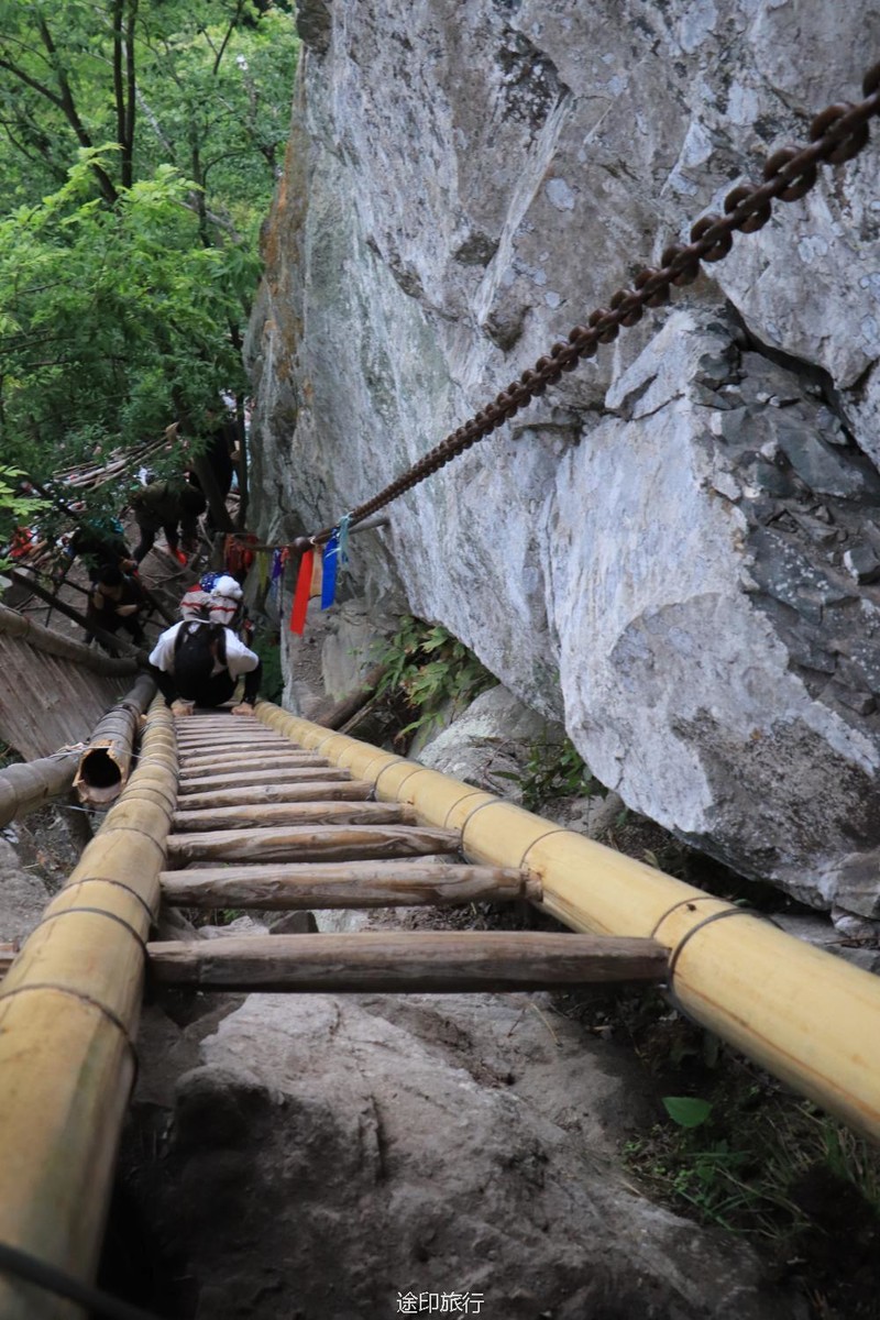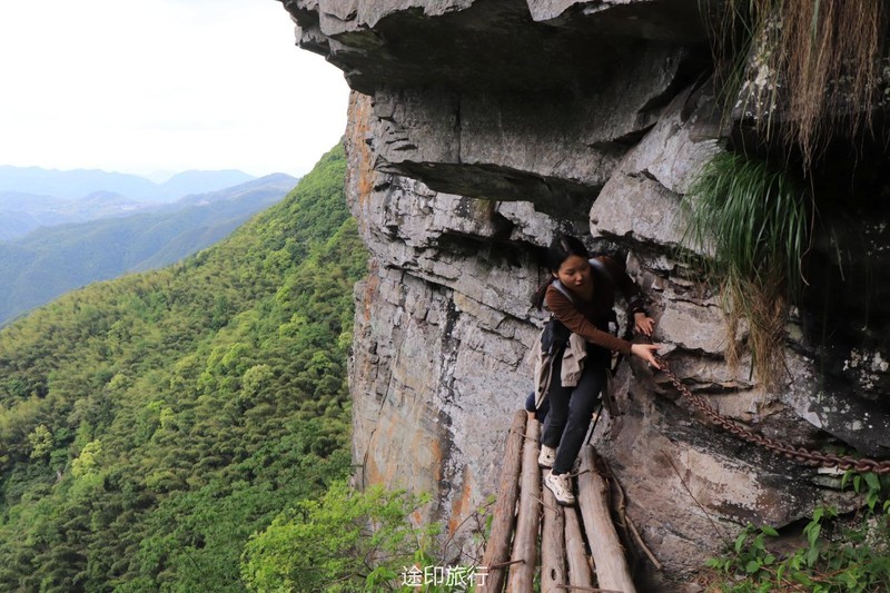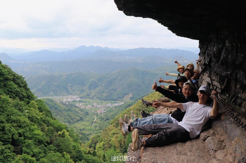 D2;飞鹰道,迷人又惊险,这是一条极具趣味性性和观赏性的徒步路线,虽然需要一定的勇气和技巧,但是它的风景绝对值得去挑战! 划岩山是一个荒废已久的景区,现在变为了徒步爱好者的天堂,也是恐高人群的噩梦,我们走的是比较经典的一条环线9KM,景区荒废多年无人维护所以原本修建好的铁楼梯已经有很多地方残缺,经过队员之间的互相帮助,大家都顺利通过。路途中的通天洞,是一条长约800米的陡峭石壁山洞,一路走上去消耗了不少的体力,完成通天洞的徒步之后,再往后就需要挑战飞鹰道了,这是一条位于划岩山顶的峭壁上的栈道,全长约1.5公里,沿途可以欣赏到壮丽的山景和瀑布,登上山顶,可以俯瞰整个黄岩市区,感受到壮阔的自然风光。 按照我们的规划6个小时完成挑战,庆幸的是五一长假最后一天返程回上海的路上竟然一路都没怎么堵车,下次再见啦!