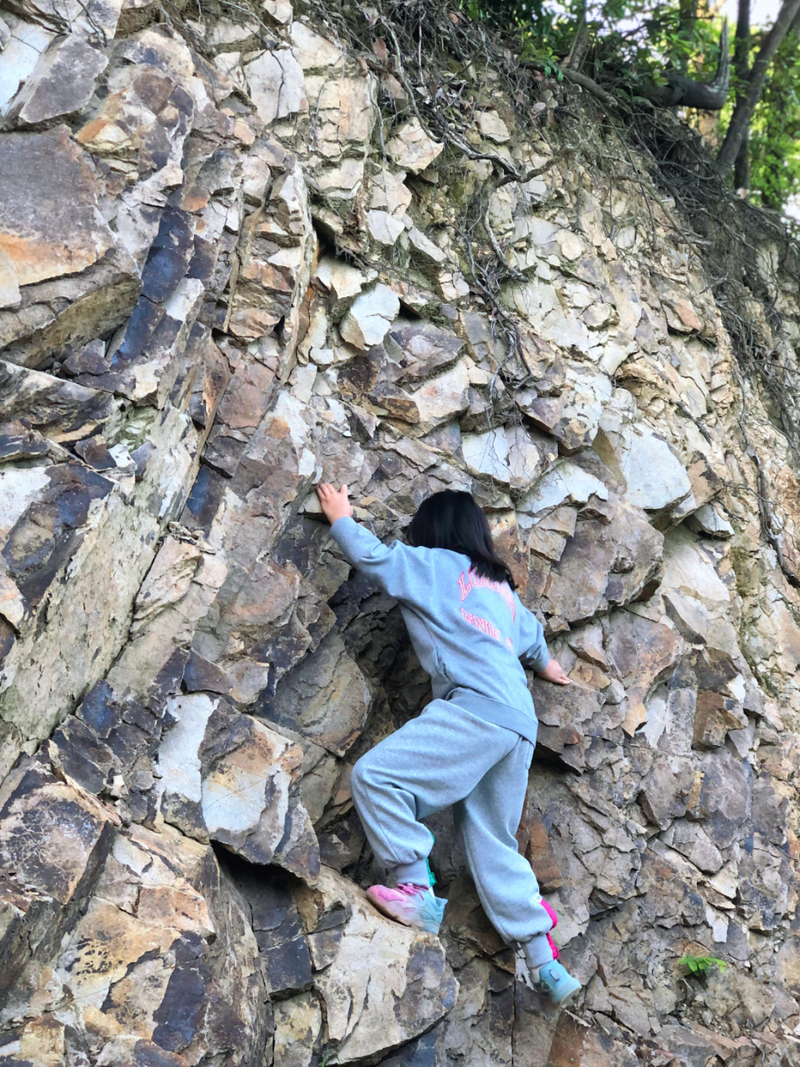 在瞻云亭休息后,我们开始后面的徒步。后面的路以平坦的土路为主,走起来很舒服,沿途会经过野茶园、寺庙、竹林,喜欢攀岩的话,大岩壁都可以攀爬试试看,一不小心可以体验一把户外攀岩。