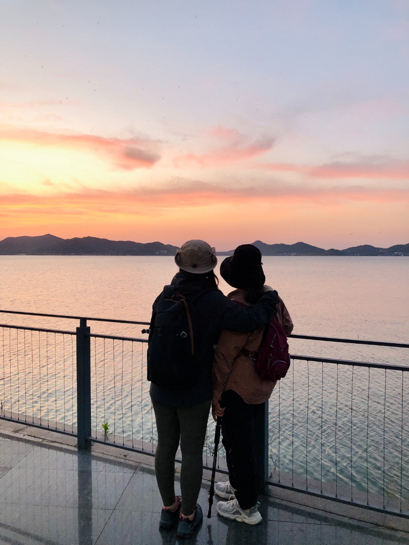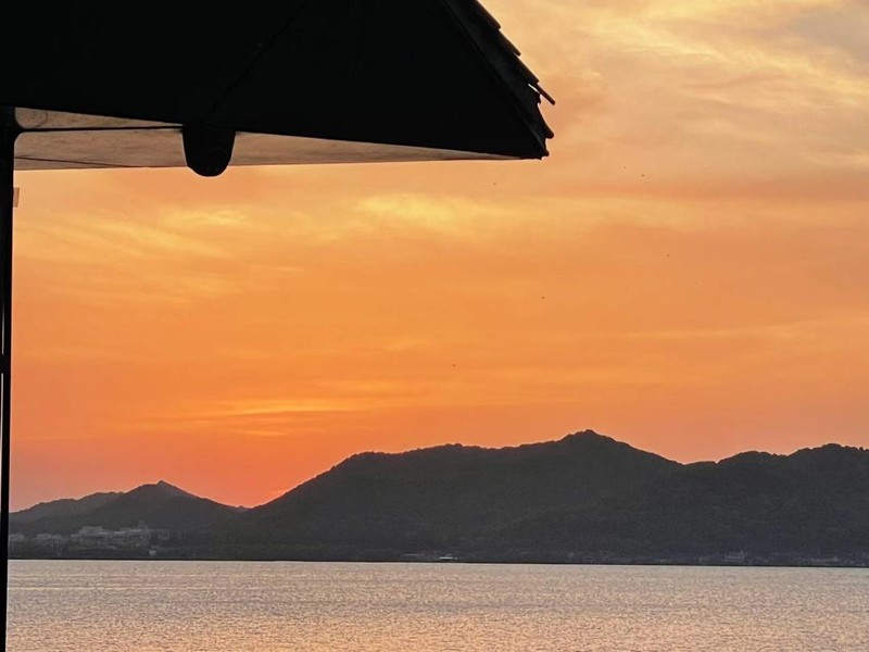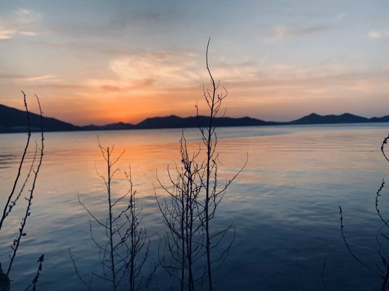 由于上午的堵车,看到了傍晚东钱湖的日落,日落的光线把湖面照的红通通,落日归山海,山海藏深意,满是惊喜,今天的行程一切都值得!