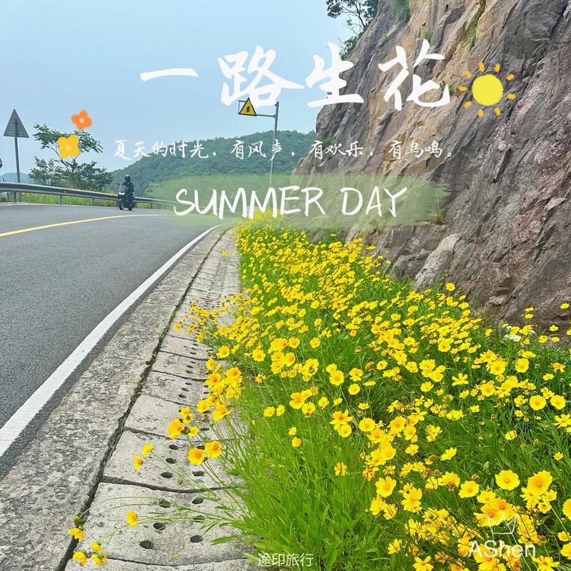 从徒步起点开始,沿着阳堂古道上山,途中经过了寂静寺,这个安静的地方为队员提供了一段难得的宁静时光。午餐解决后,我们继续上路,路过蓝莓园,享受了采摘新鲜蓝莓的乐趣。接着来到了观顶湖,这里成为了移动咖吧和机车族的聚集地,湖边停着许多重型摩托车。在满山金鸡菊的陪伴下,让人心情愉悦欣赏周围的美景。