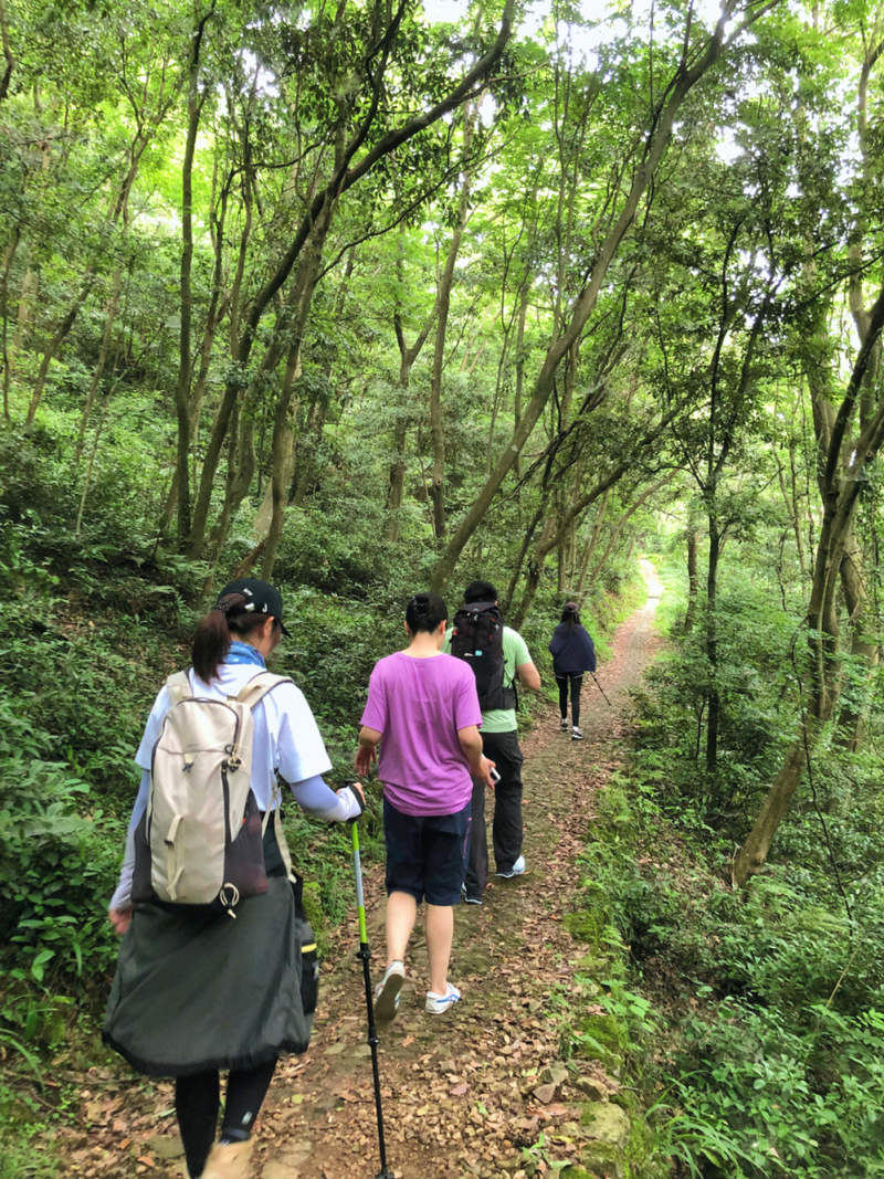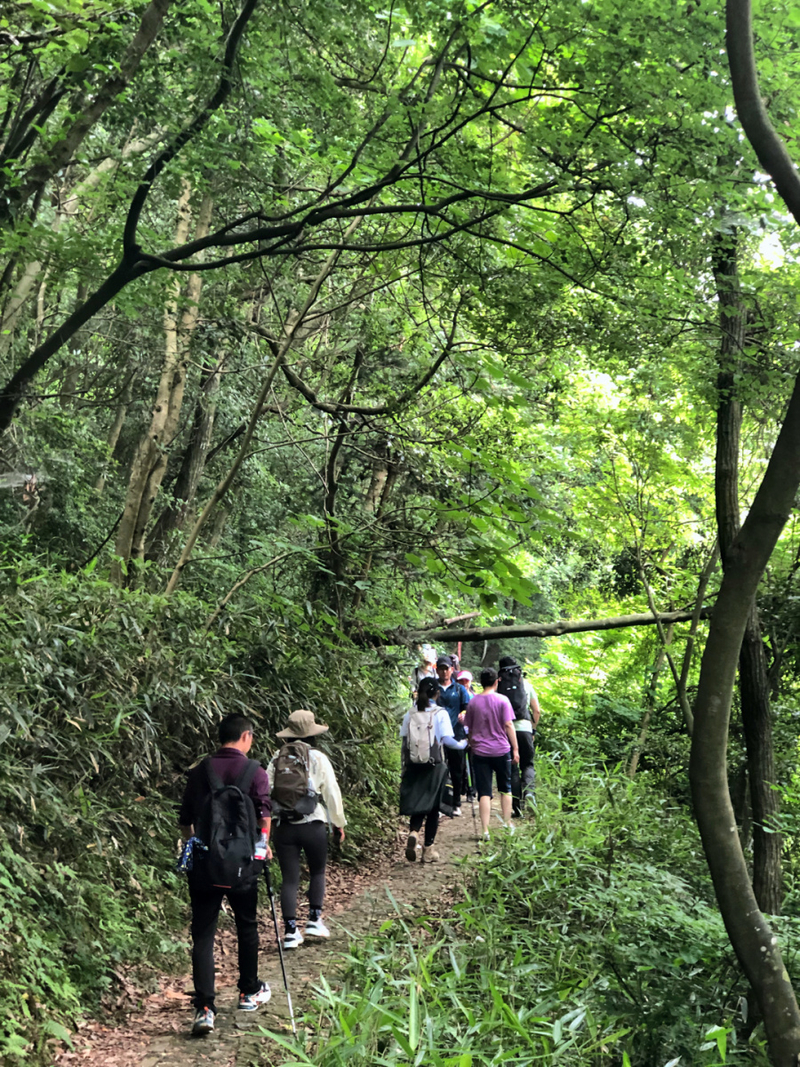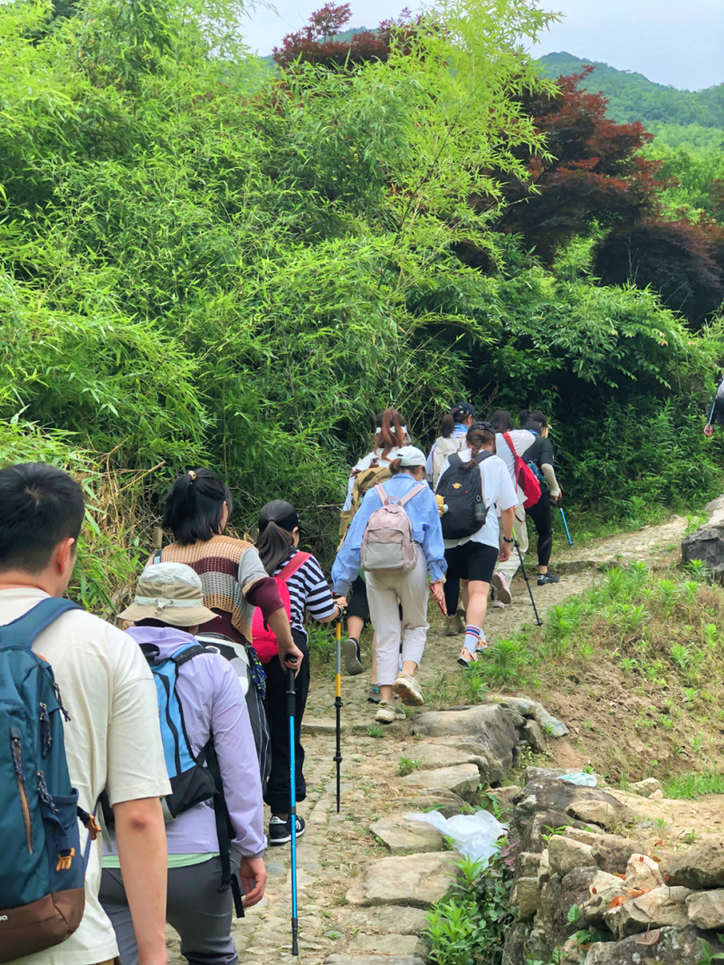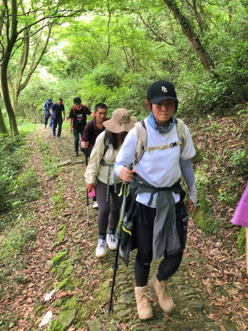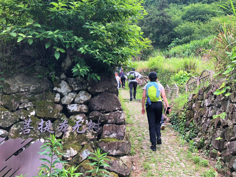 在村子里稍事调整后,我们开始今天的徒步,开始是菩提岭古道,古道徒步大概3公里,以山路为主,爬升不高,有节奏的在竹林中徒步,走累了就在路边稍微休息,走走停停,大概一个多小时就可以到达山顶的白云禅寺,我们在这里选择吃午饭,吃好的小伙伴还可以在这边拍拍照片。