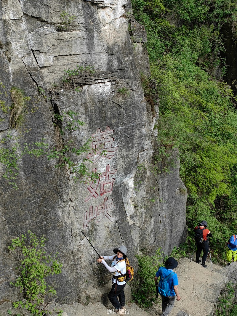 后面来到了爬眉的地方 由于山上的两道缝隙 看山去比较像山脉的两条眉毛 所以当地人称之为爬眉。当然只是看上去比较危险 现实还很宽的了 大家不要担心安全啦