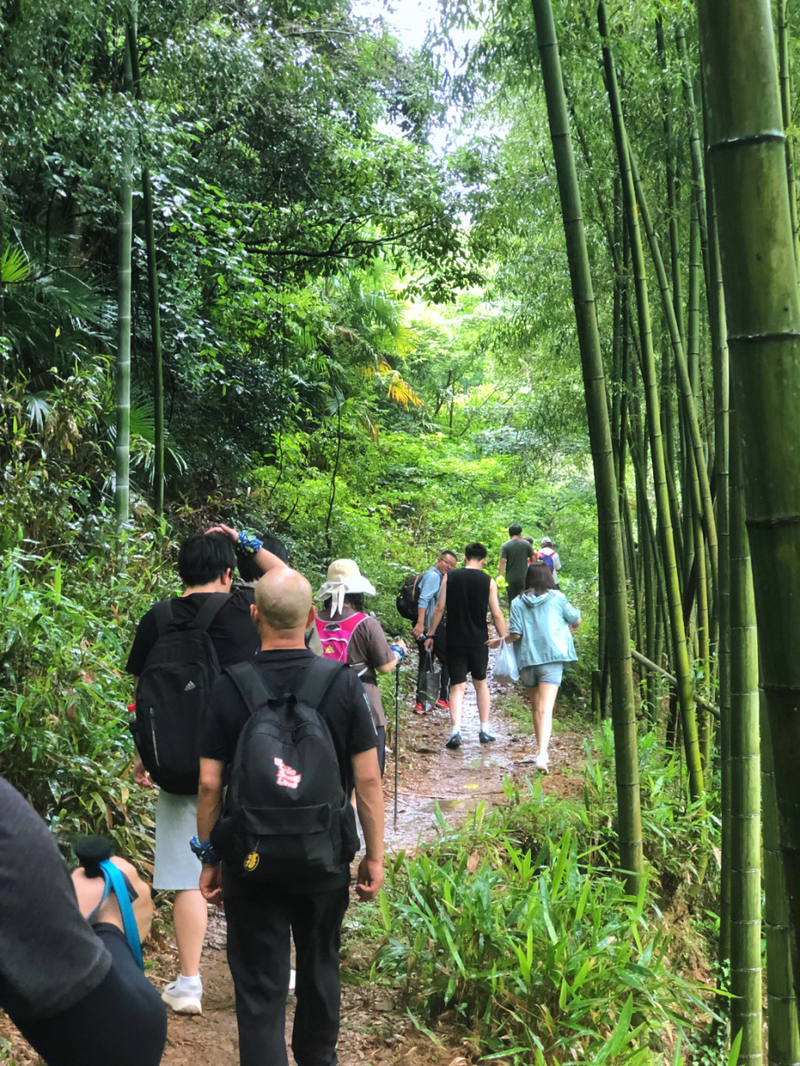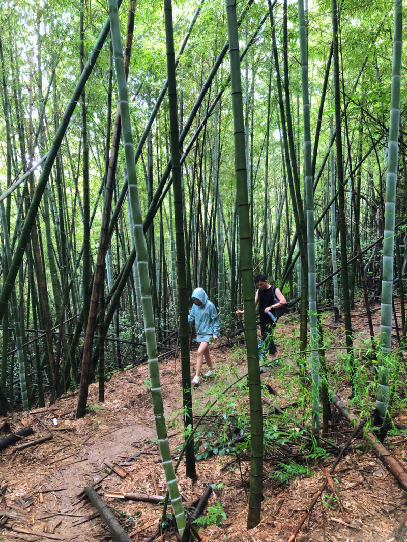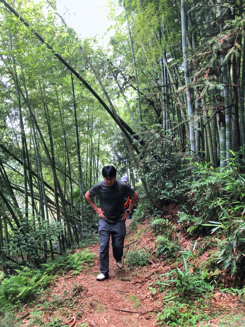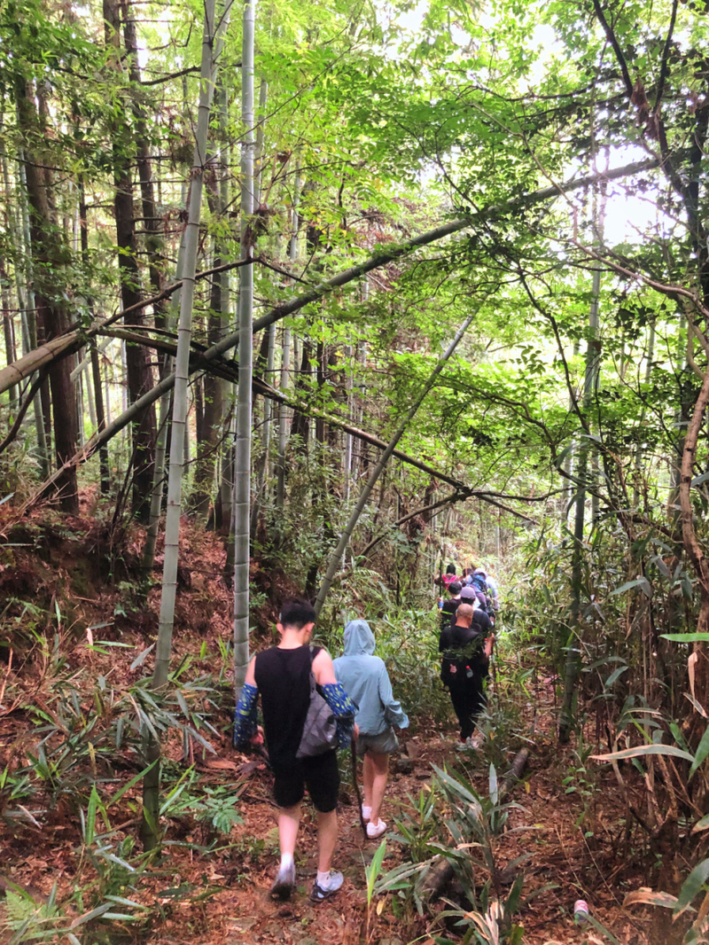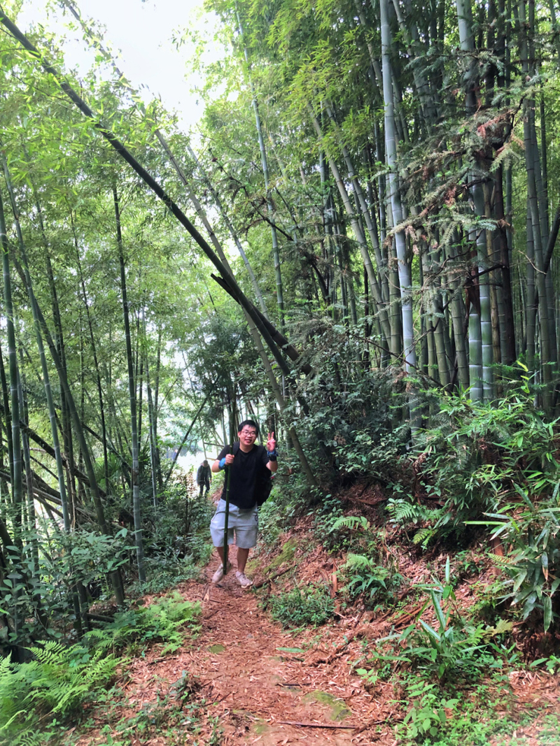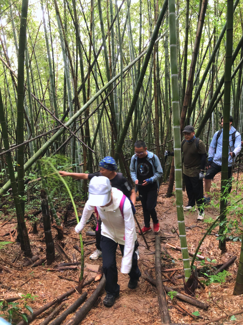 路过杨梅林后,大家稍作休息吃今天的路餐,过程中大家相互分享。后面的一段徒步以丛林、竹林为主。由于走的人比较少,其中两段路比较野,小路两次全是茂密的小竹林,需要手臂遮挡住脸来开路,穿长轴长裤的衣服就很有必要。