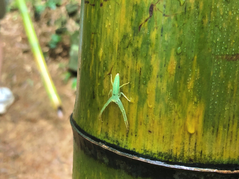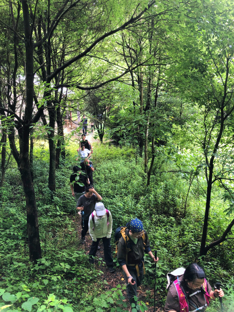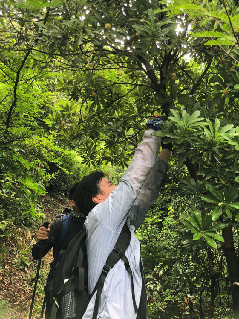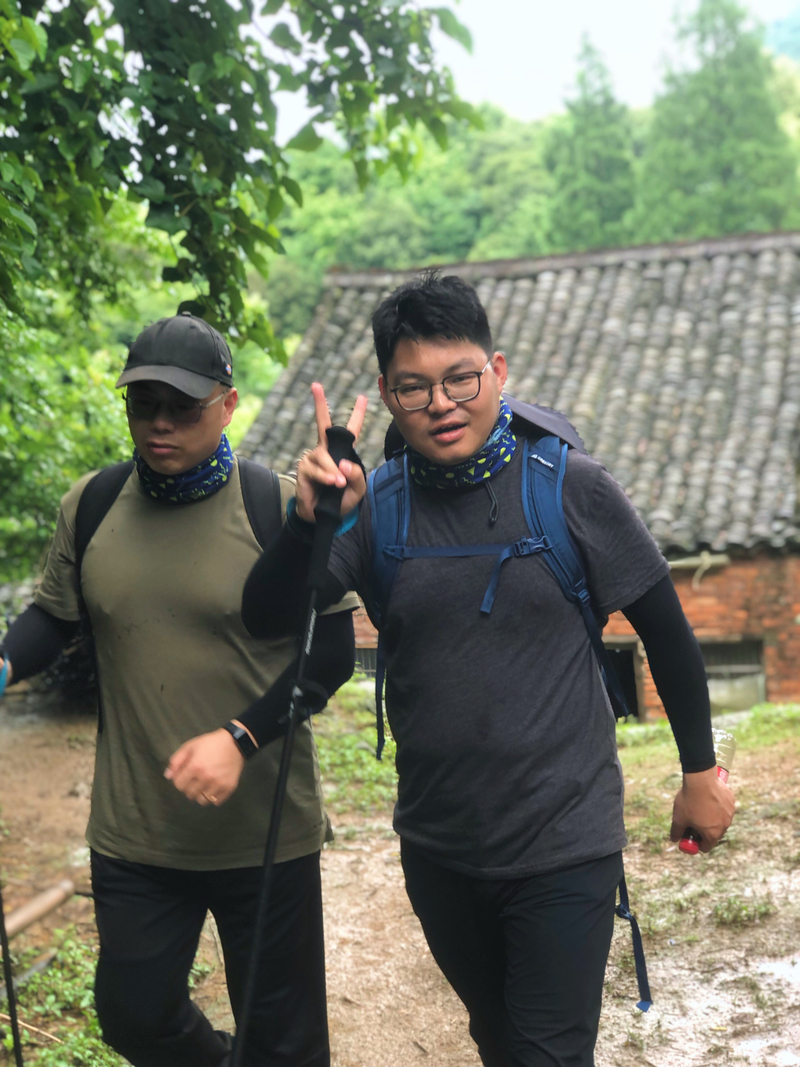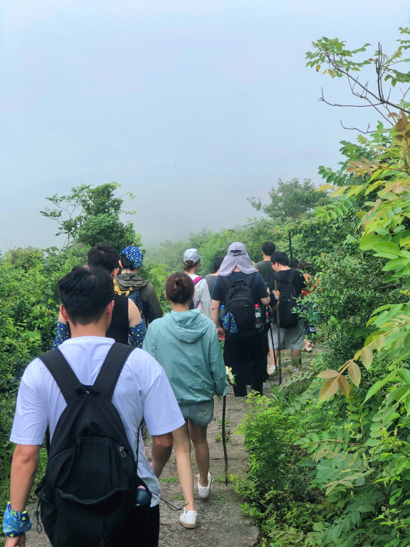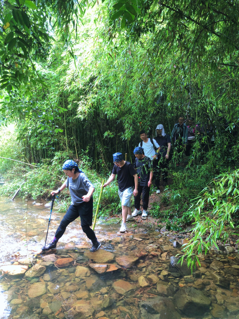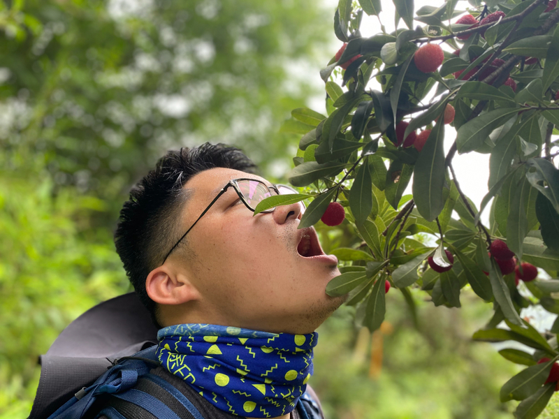 路过杨梅林后,大家稍作休息吃今天的路餐,过程中大家相互分享。后面的一段徒步以丛林、竹林为主。由于走的人比较少,其中两段路比较野,小路两次全是茂密的小竹林,需要手臂遮挡住脸来开路,穿长轴长裤的衣服就很有必要。