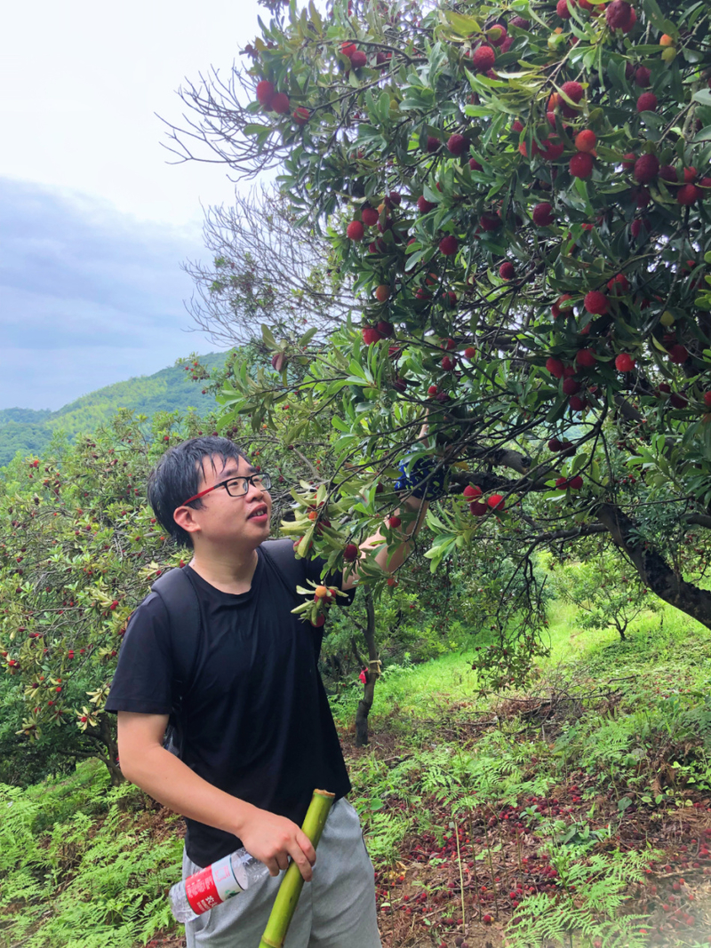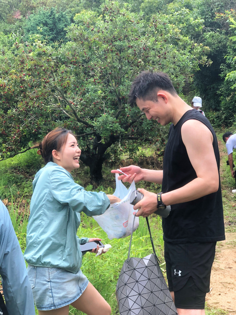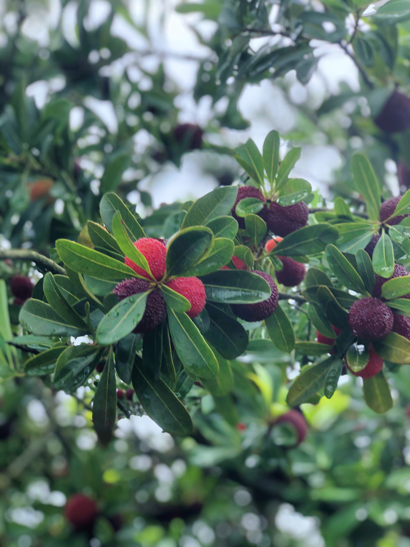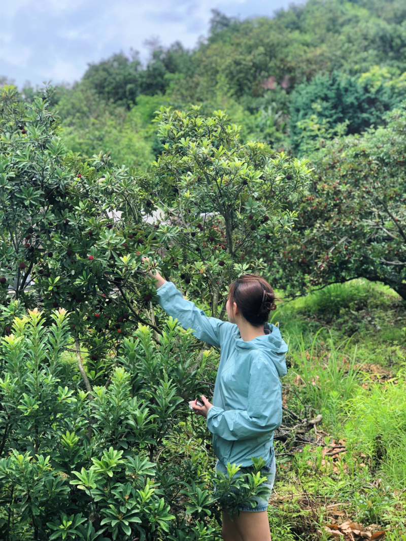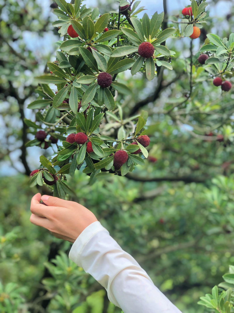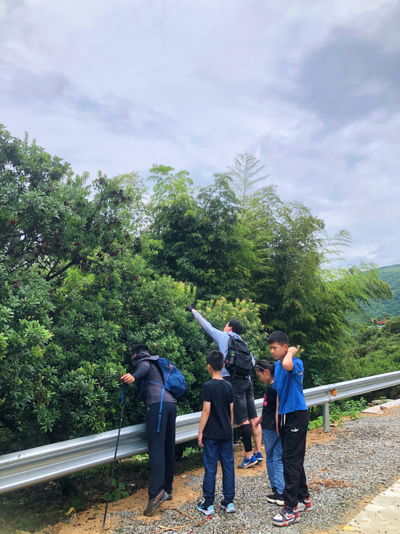 经过大概40分钟左右,我们到达了遇到的第一段公路,公路沿线开始有杨梅树,大家看到杨梅树也先后采摘品尝,公路沿边也挺有不少私家车来自家采摘杨梅的。再稍微走下就看到满山遍野的杨梅树,边走边吃,好好享受一番杨梅盛宴,杨梅虽多,但是要做到只吃不浪费。