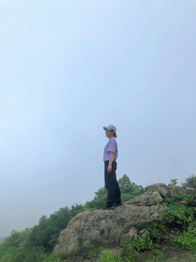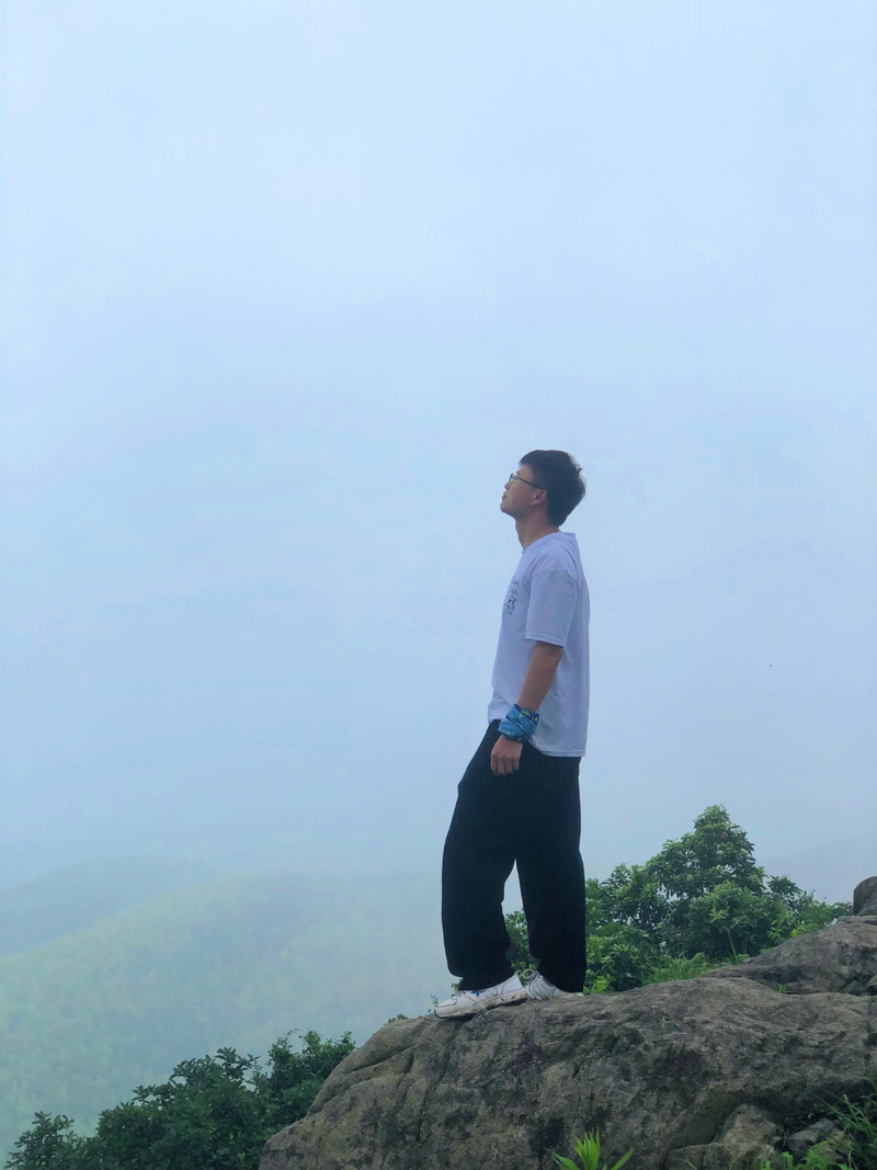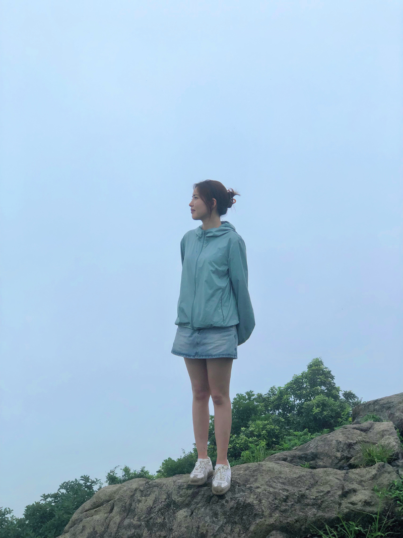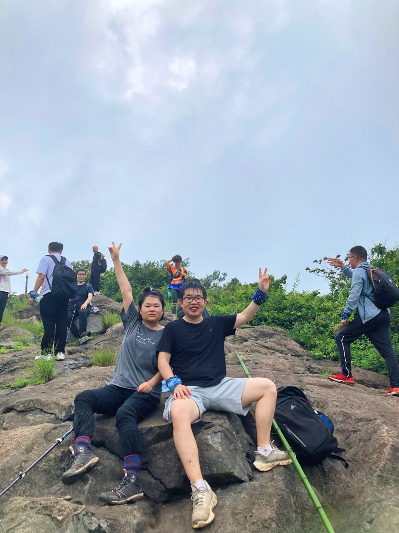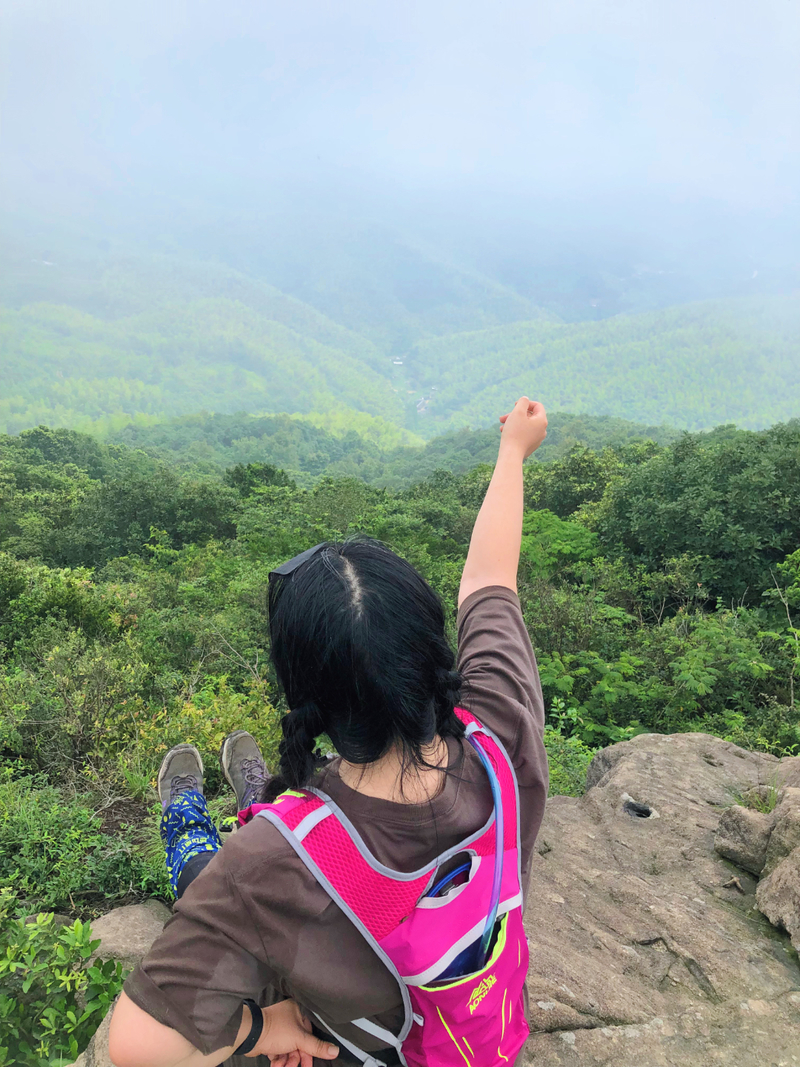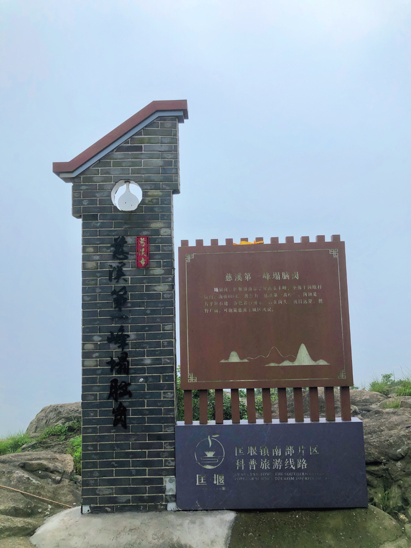 后面我们到达此次路线的最高处——蹋脑岗,蹋脑岗是慈溪市栲栳山脉的第一高峰,海拔446米。山顶以几块巨石为主,站于塌脑岗之上,一览众山小,在这里拍照打卡肯定是必不可少。