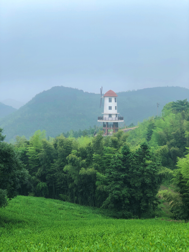 照片拍的差不多后,我们开始下山,这段下山路以石板路为主,下山的后半段又遇杨梅林,还有风车屋,风车屋有两层,里面还有旋转楼梯,挺好拍照的。风车屋现在无人管理,好像可以露营,但还没实践,期待后续完善的周边设施。