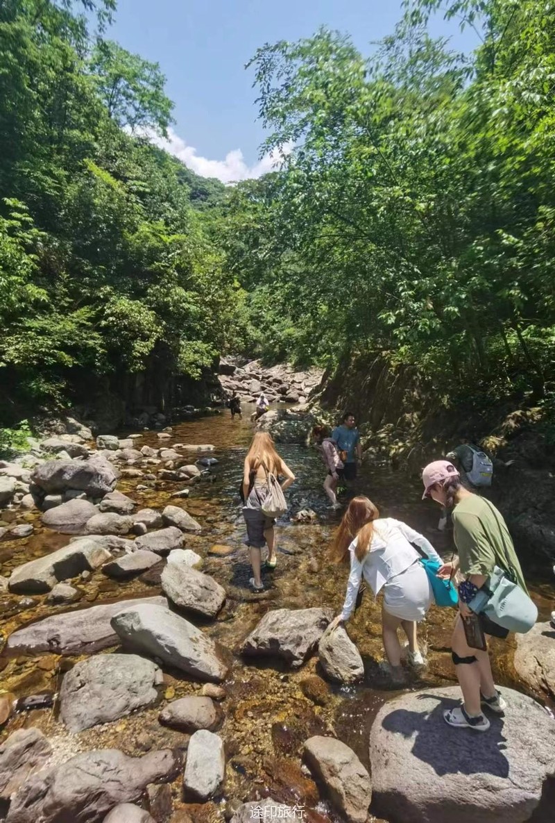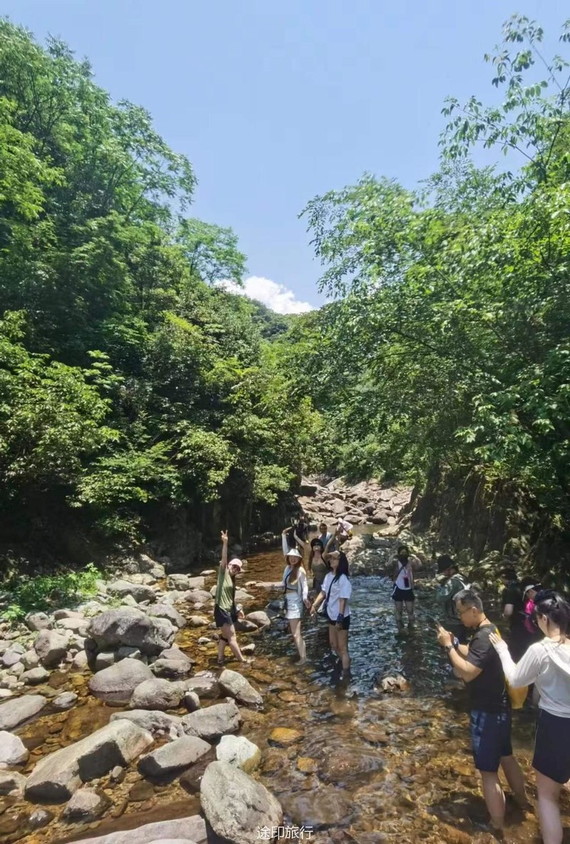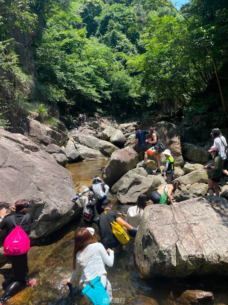 天气组建转热,今天开启了今年的第一次溯溪之旅,来到浙江临安的蝴蝶谷,这是一个令人心旷神怡的地方,河水清澈,景色又买,大巴车到蝴蝶谷公交站,下车后向上走了一段公路,然后沿着蜿蜒曲折的溪流小径前行,大概5分钟行程后,开始下到河里面开始溯溪,刚开始的时候,水流很平缓,我轻松地穿行在清凉的水中,感受着水流轻拍身体的愉悦。水中的小石头和岩石形成了各种形状的水潭,由于是今年第一次,石头比较滑,所以大家走的都很小心,在走到水潭的时候,大家放下身上的装备,在水潭里面游泳,打水仗,在经历过一潭又一潭,终于来到了我们行程的终点,大家短暂休息晾干衣服后,开始沿着山路下山,下到出山口,大家还吃到了早上带过来的西瓜。